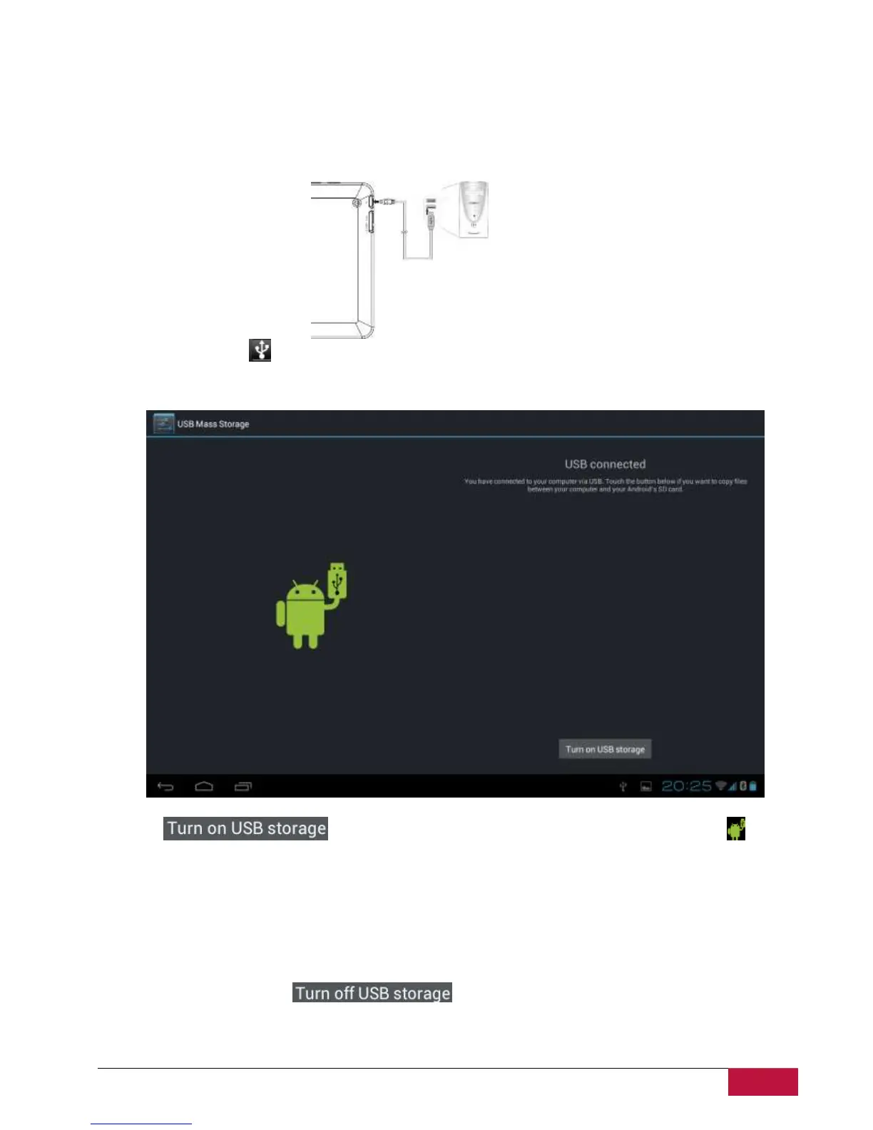 5. After copying the files, you may turn USB off. To do this, if you would like to keep your device