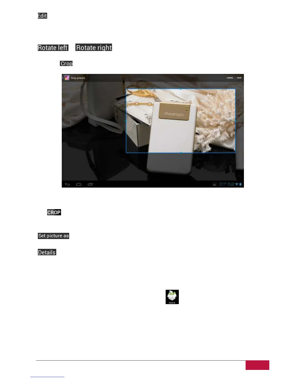 If you tap icon the following cropping rectangle will appear on top of the picture/photo: