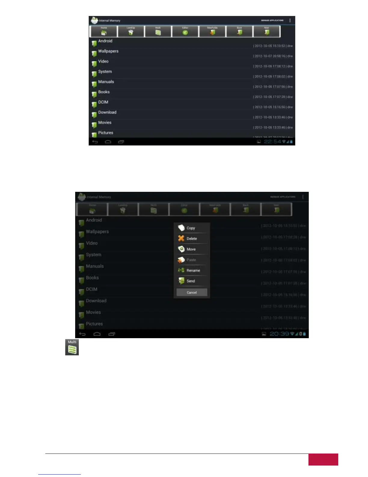 storage card: copy/paste, delete, move and rename file and folder and send them via Bluetooth, mail or
