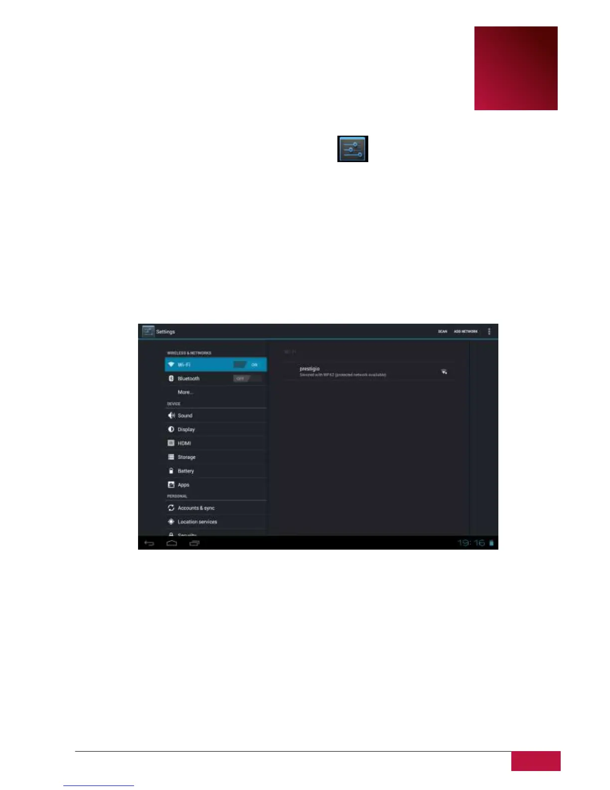 To open the Settings screen, simply tap the Settings icon on the Home screen.