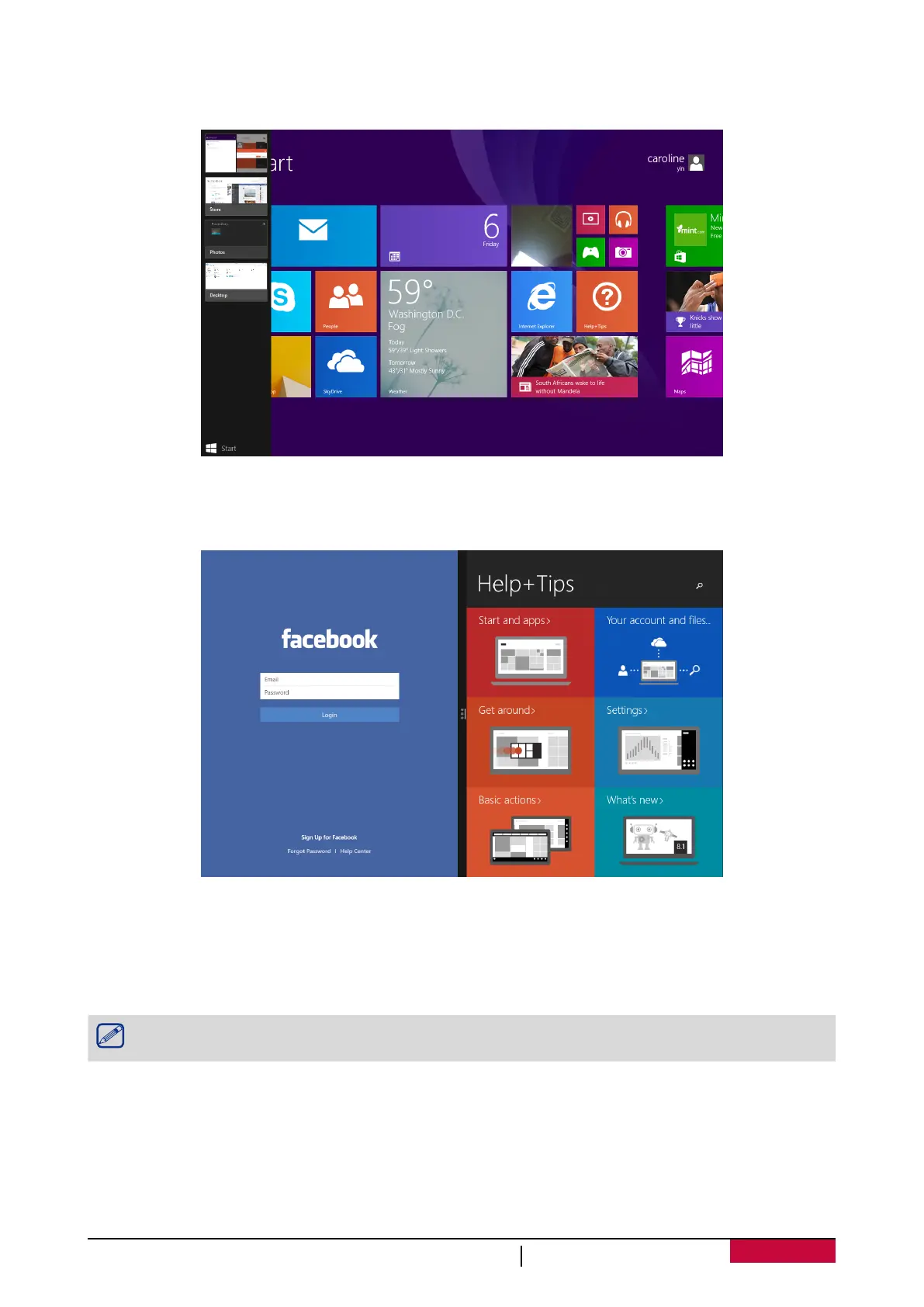 •Swipe in from the left edge, and with your finger still on the screen, move it back toward the left