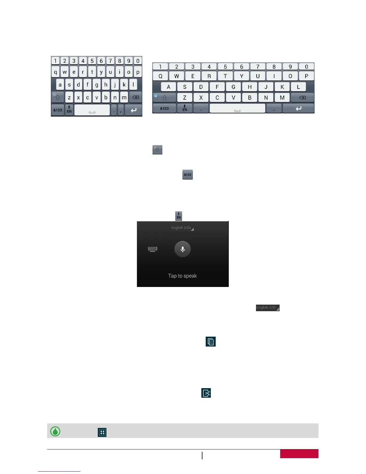 Voice typing: open the Prestigio keyboard, tap .