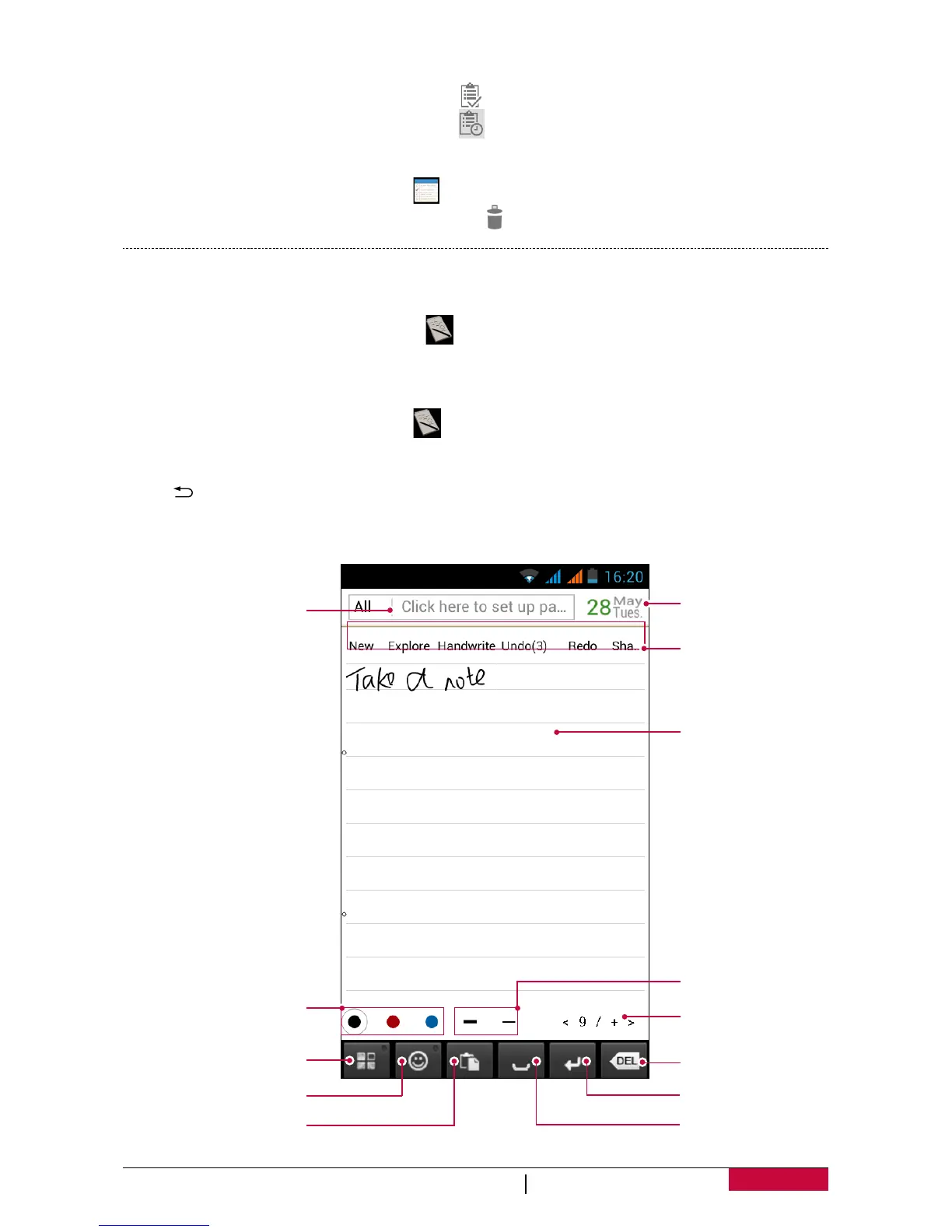- Tap the third selection in action tab (handwrite/paint/keyboard), choose handwrite.