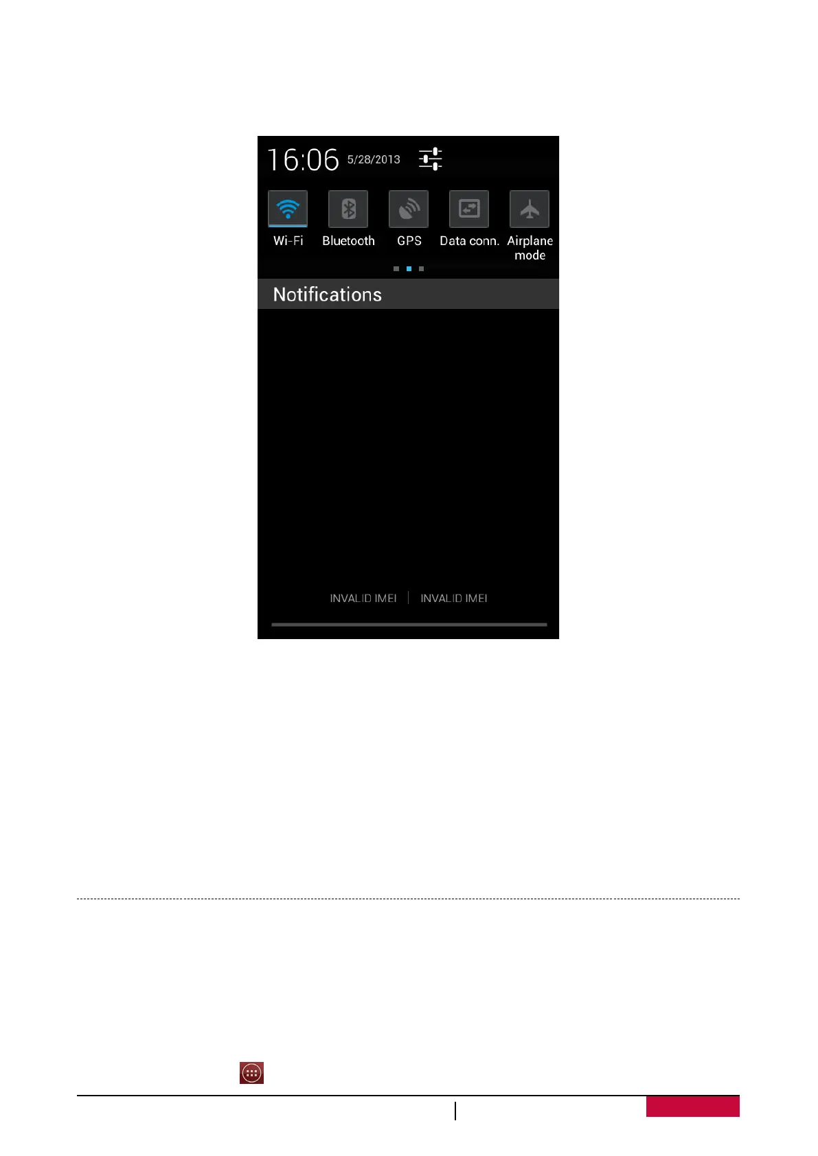 - Wi-Fi: activate or deactivate the Wi-Fi feature.