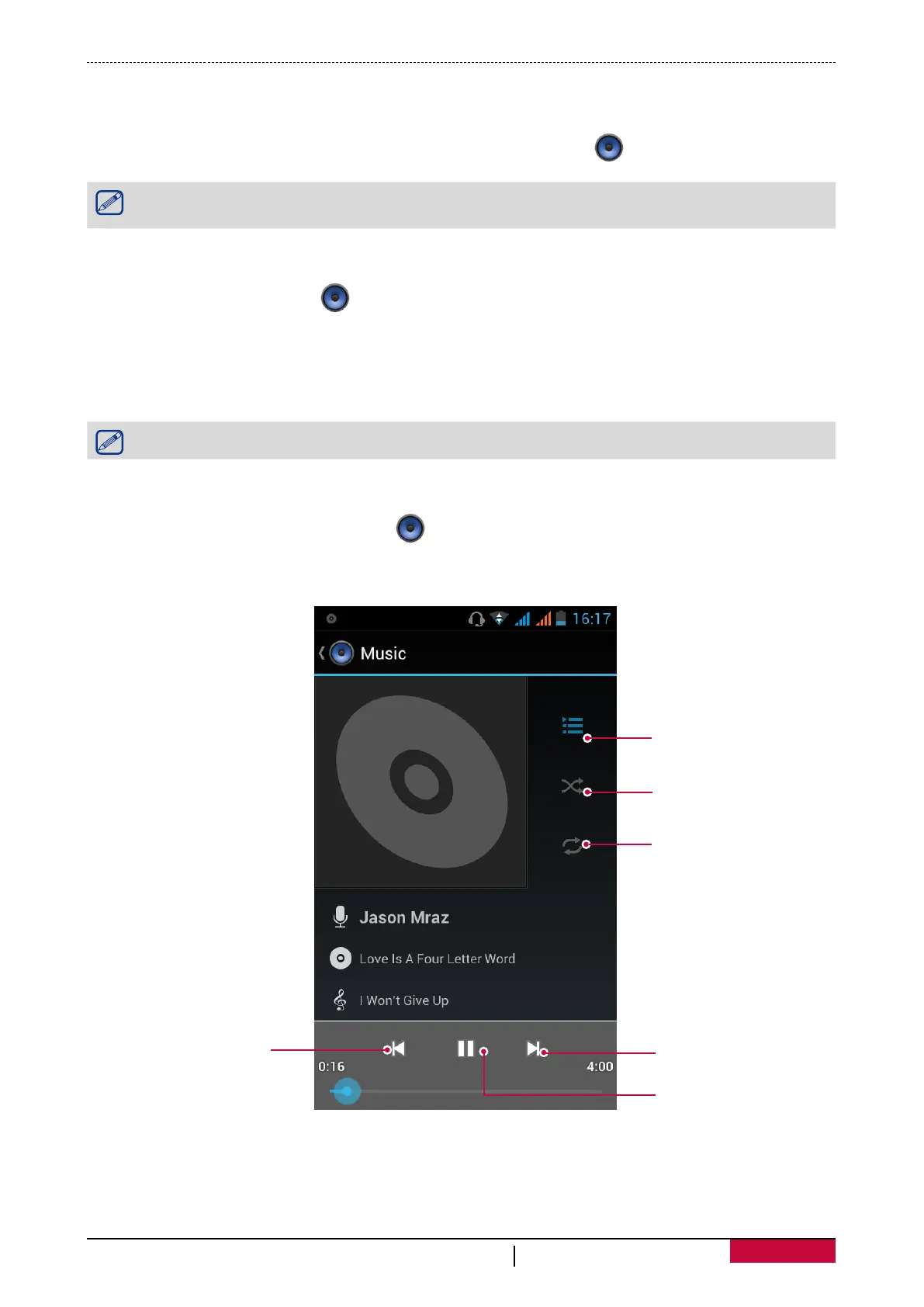 - To use the music player, on the home screen or list menu, tap .