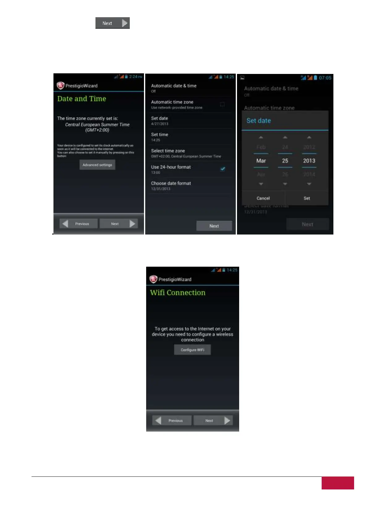 To connect to a Wi-Fi network, you should tap button Configure WiFi, choose your network SSID name in