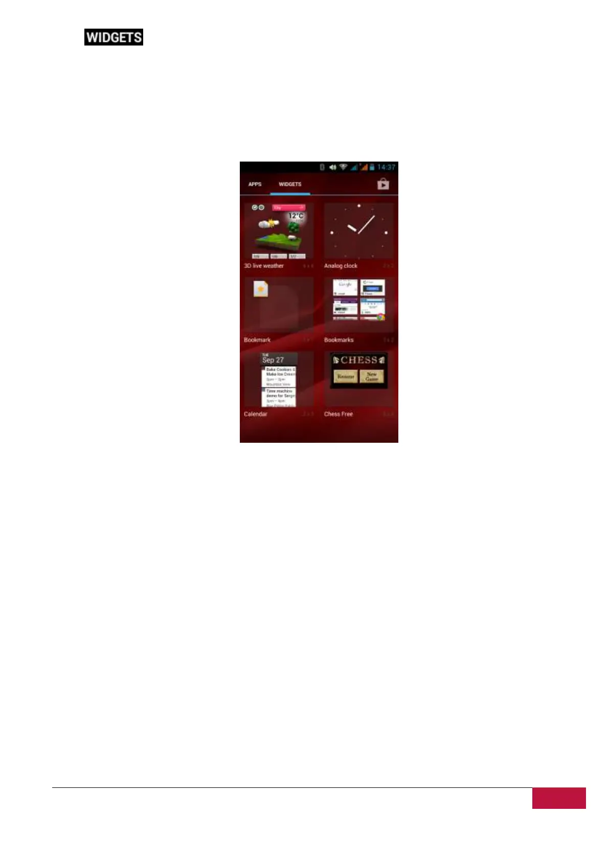 Examples of Widgets are as follows: