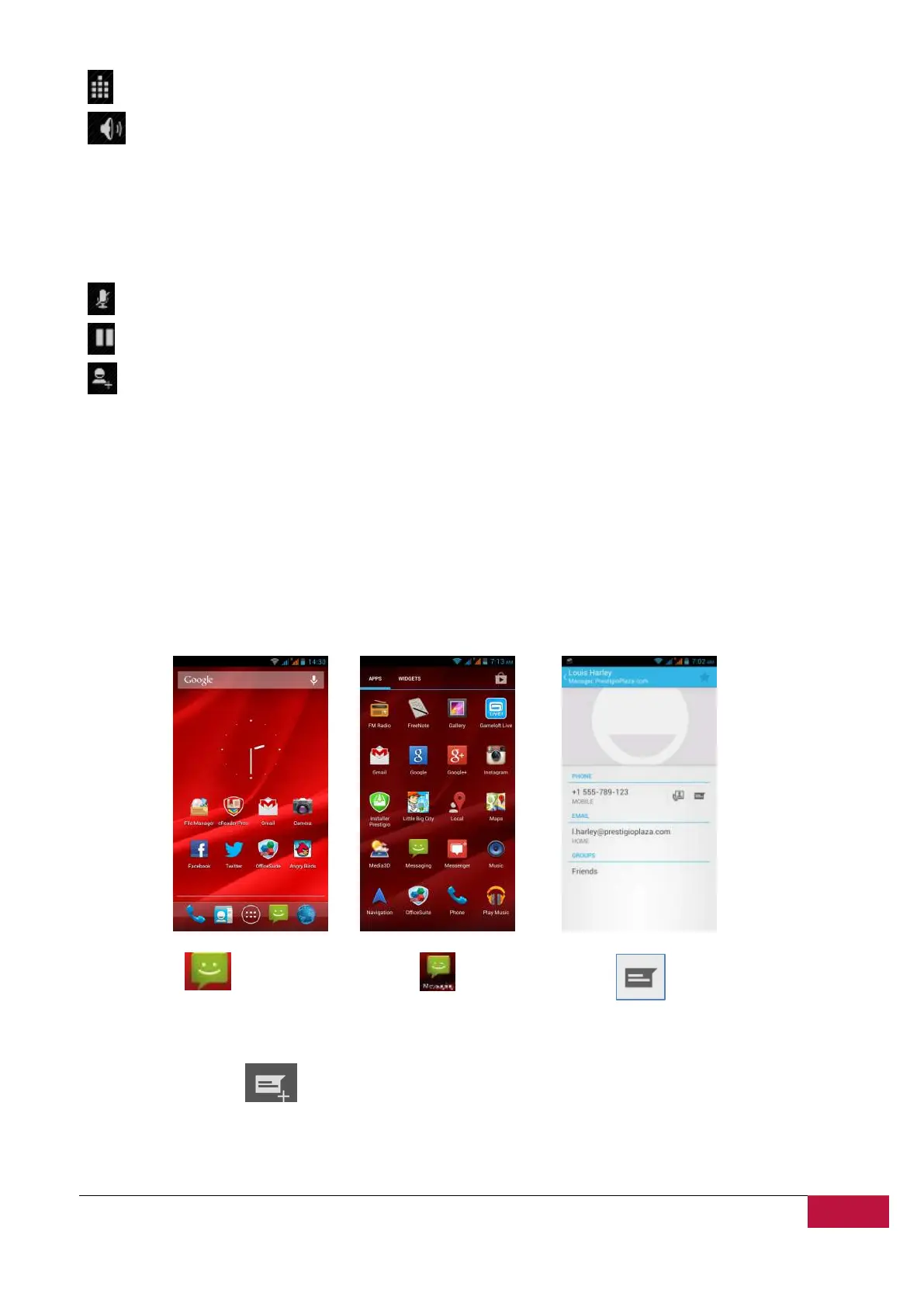 To open Messaging app you may either tap respective icon on the Home Screen, Apps list, Contact card,