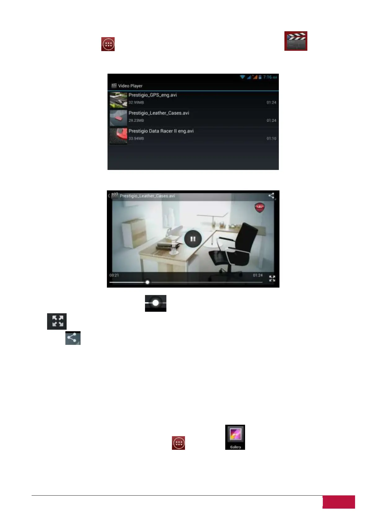 Tap the launcher icon on the Home screen and then tap the Video player icon to go to the