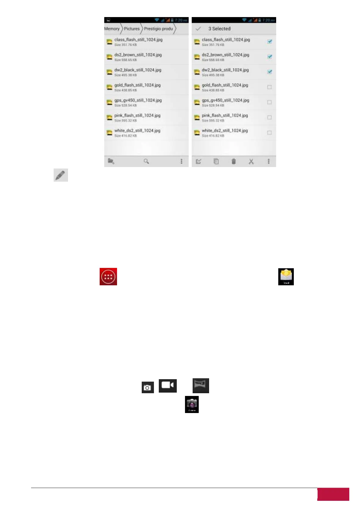 modes by touching respective icons , and .