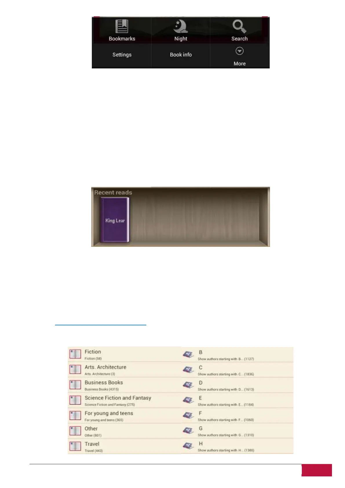Bookstore in the device is available in the form of OPDS catalog: simple form of the books list that