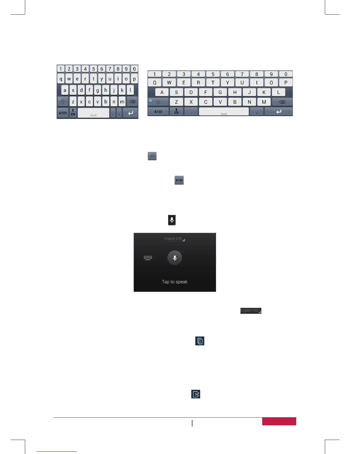 Voice typing: open the Prestigio keyboard, tap