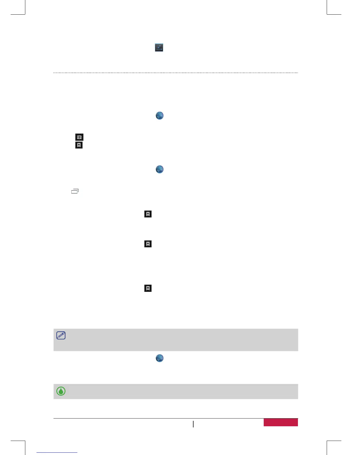 to browse wepages from Bookmarks, History and Saved pages.