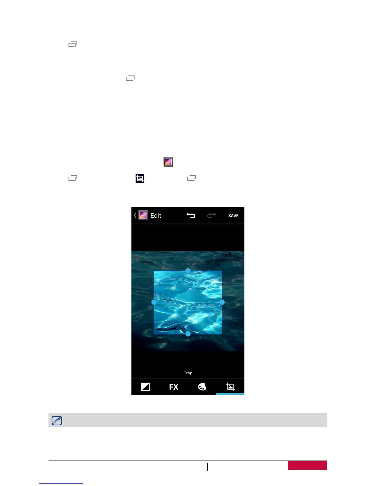 •Crop: Resize the orange frame to crop and save the photo in it.