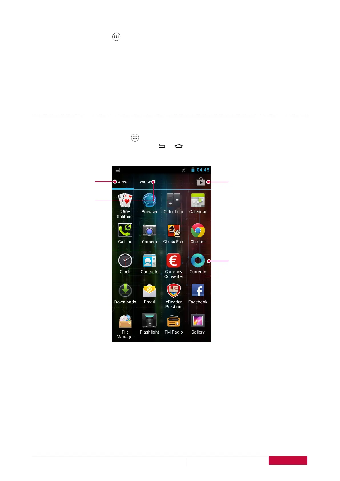 All yours apps' icons can be found on the list menu. You also can find all the widgets of the apps on