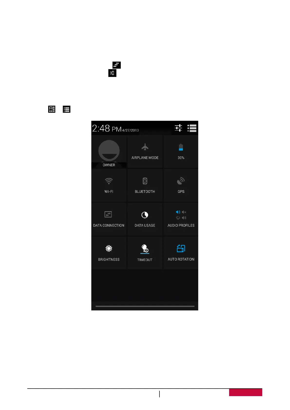 quick shortcut to change the mode and set the brightness, auto rotation if slide the tab.