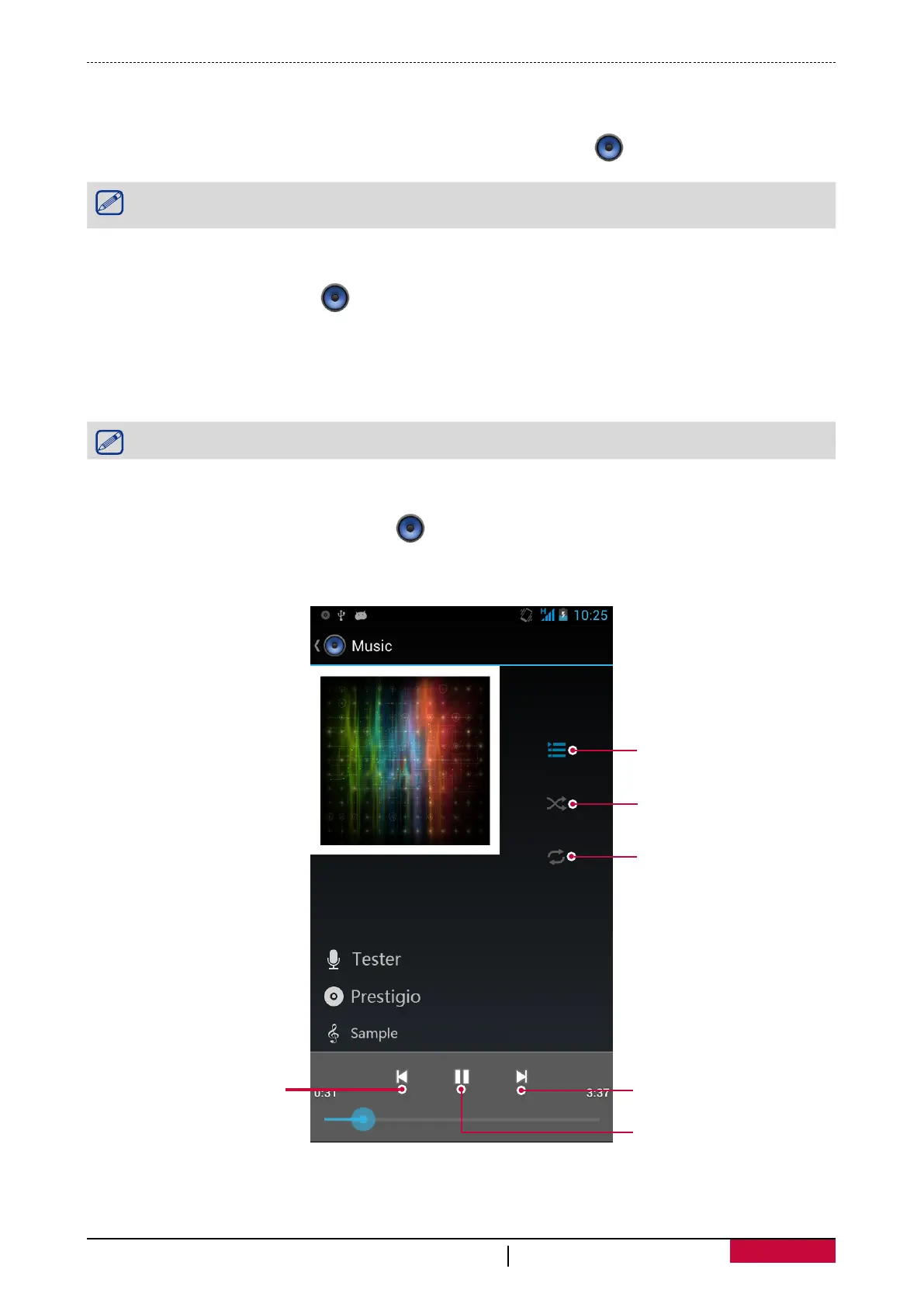 - To use the music player, on the home screen or list menu, tap .