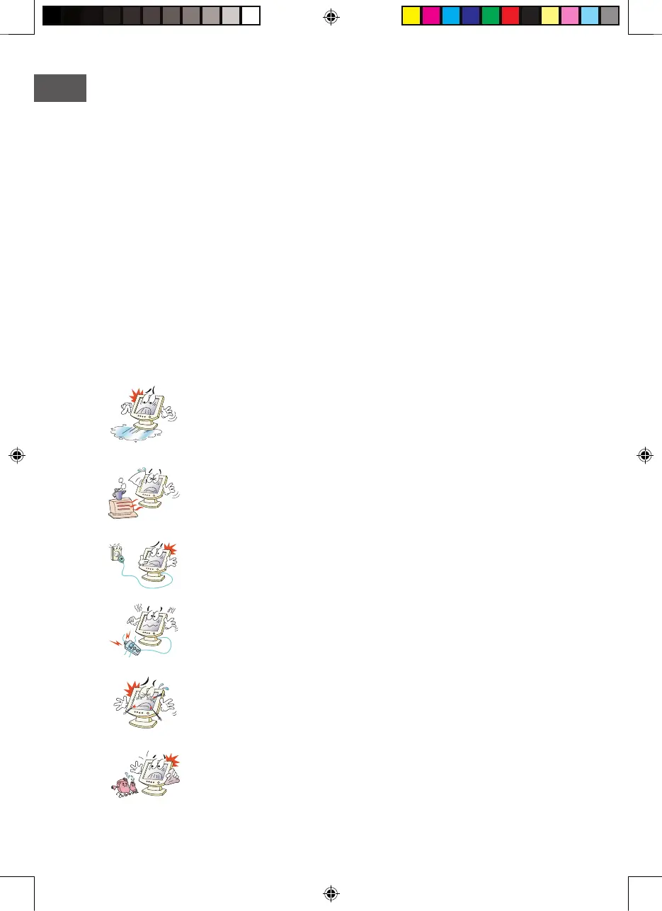Semmilyen nedves tárgyat ne helyezzen a monitorra és a kábelre.