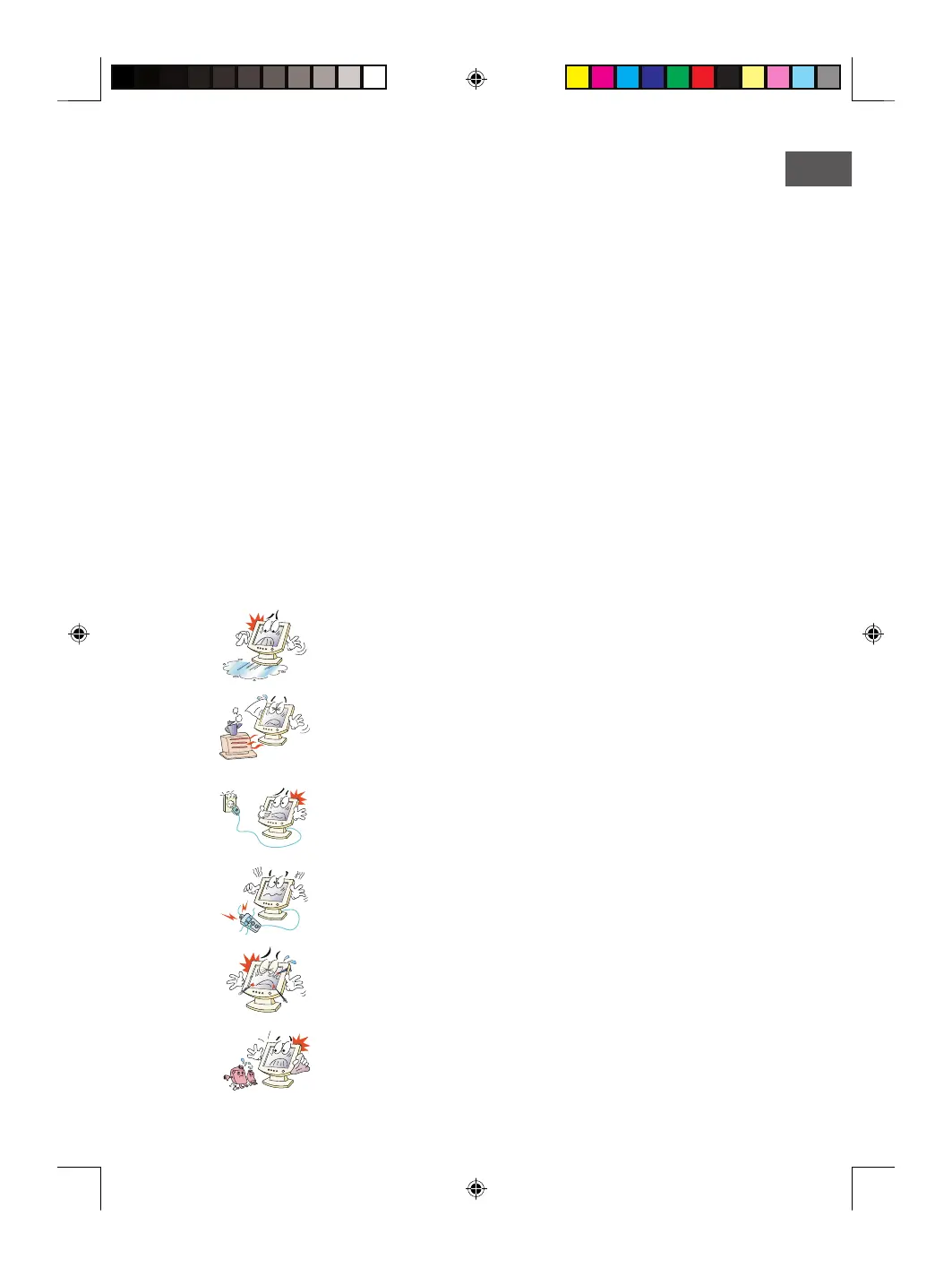 Nu plasati nimic umed pe monitor sau pe cordonul de alimentare.Nu
