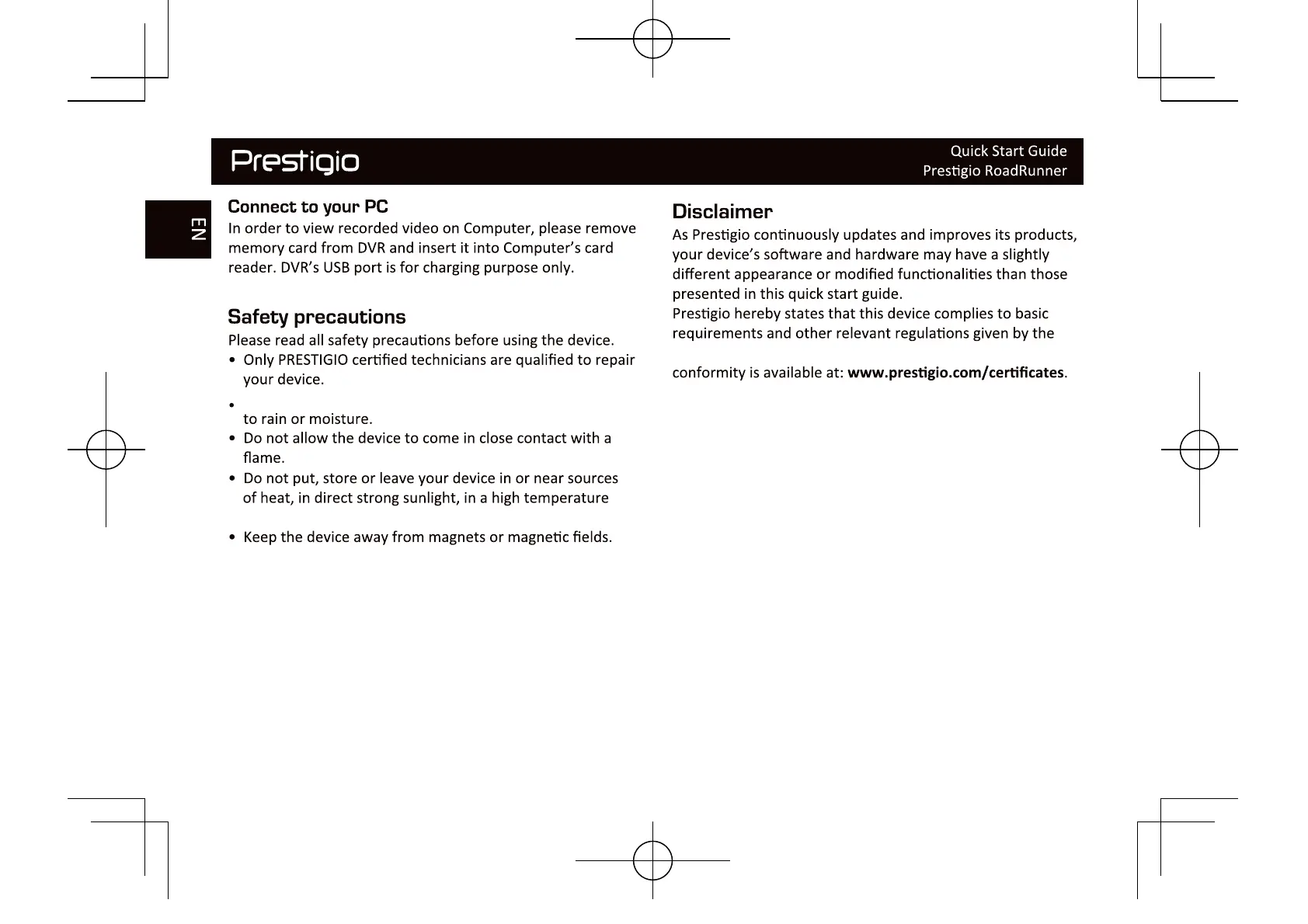 Prestigio RoadRunner 350 - Connecting to Your PC; Safety Precautions; Disclaimer