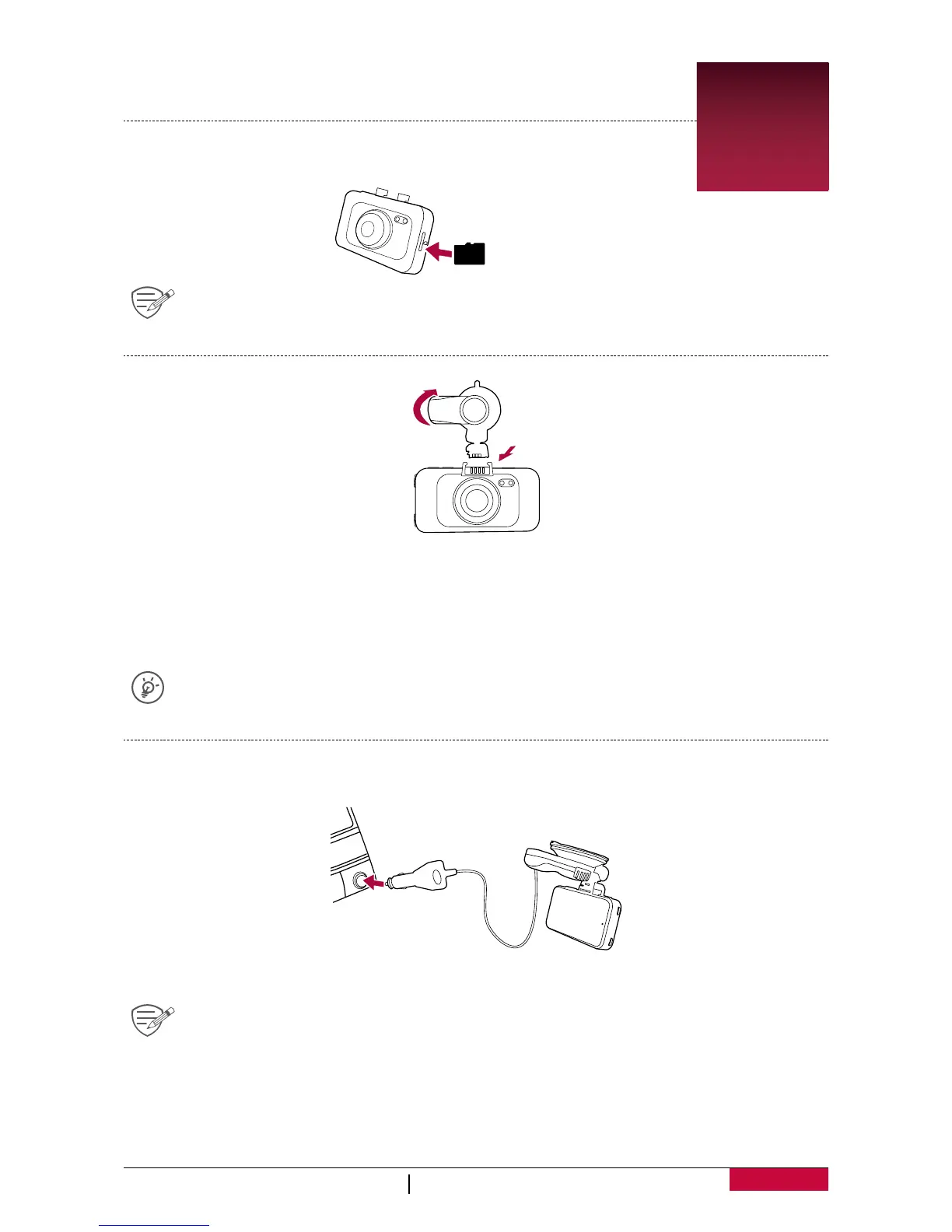 •Using the car charger: charge the device through cigarette lighter. The device will start charging