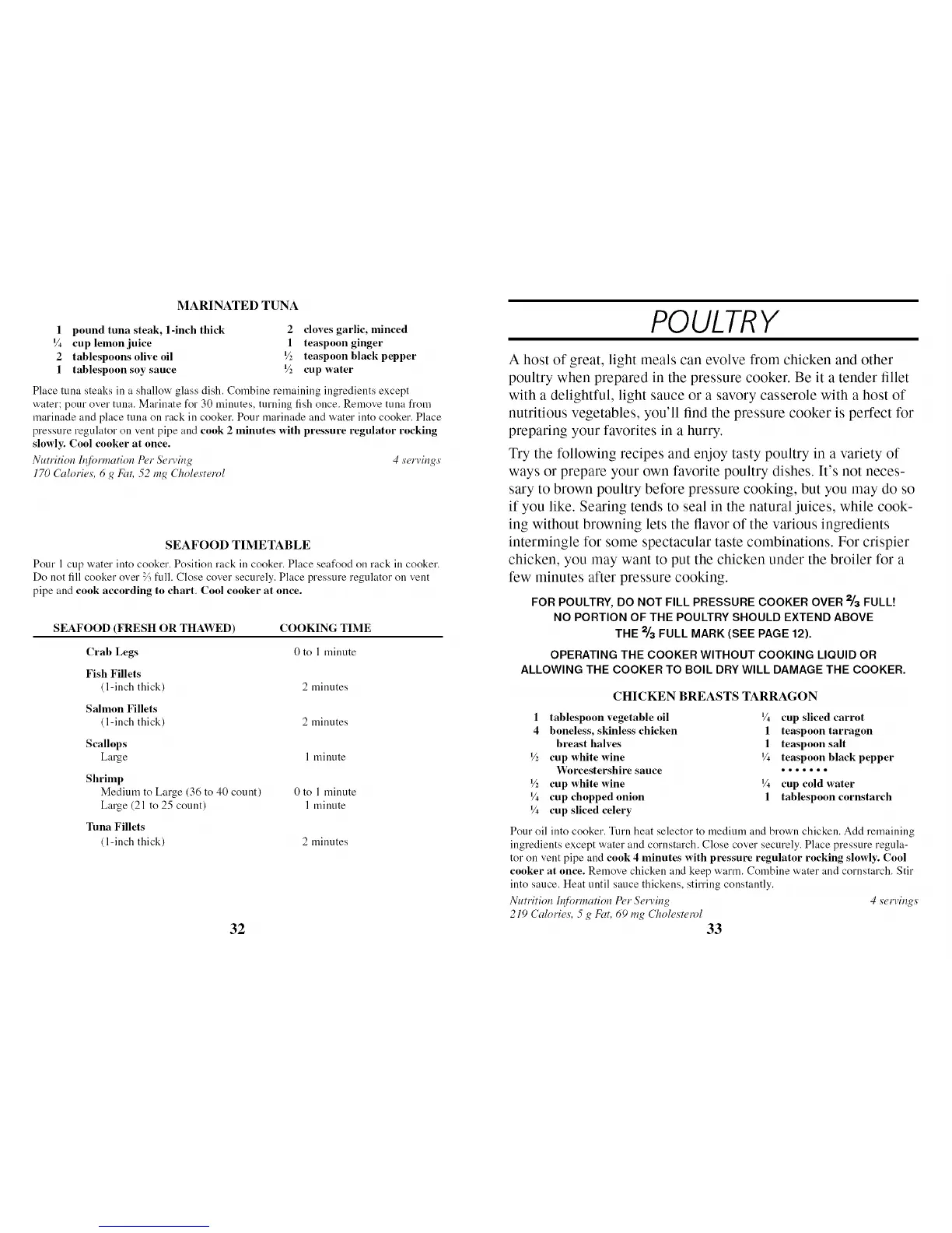 FOR POULTRY, DO NOT FILL PRESSURE COOKER OVER 2/3 FULL!