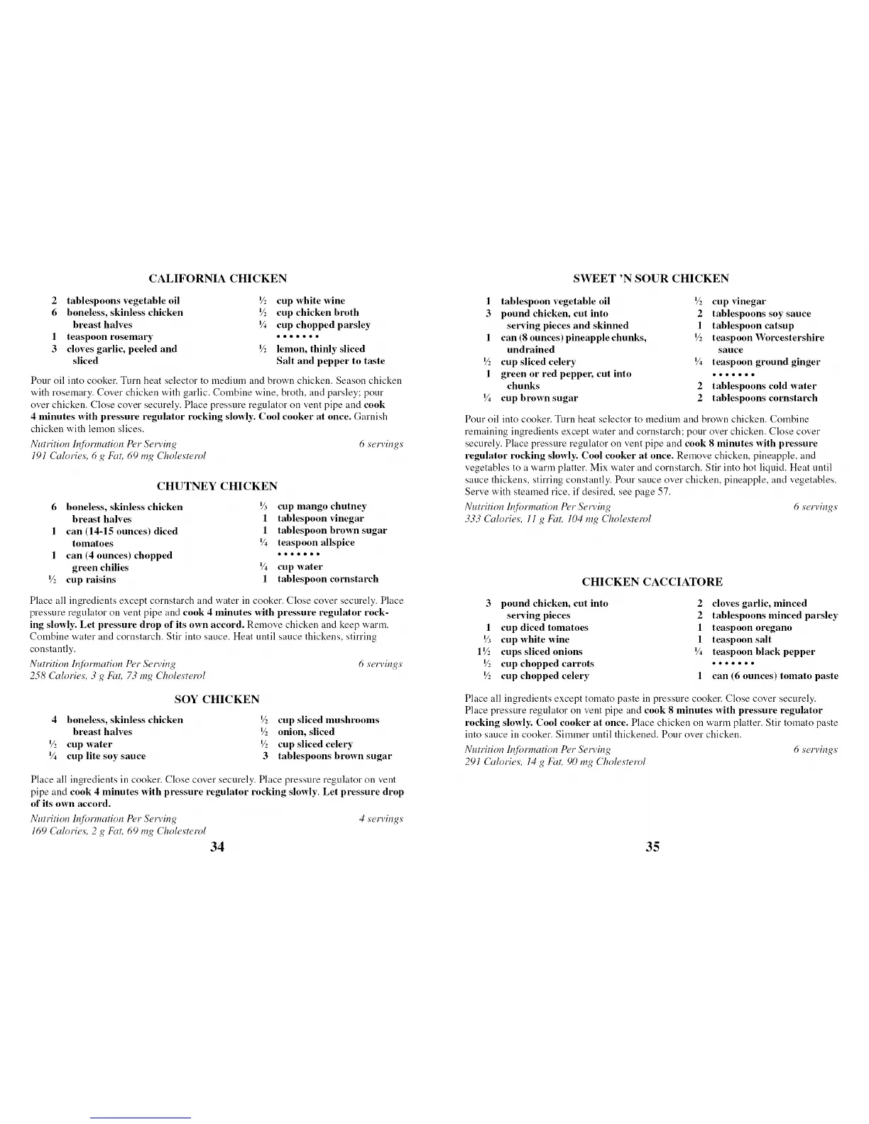 regulator rocking slowly. Cool cooker at once. Remove chicken, pineapple, and
