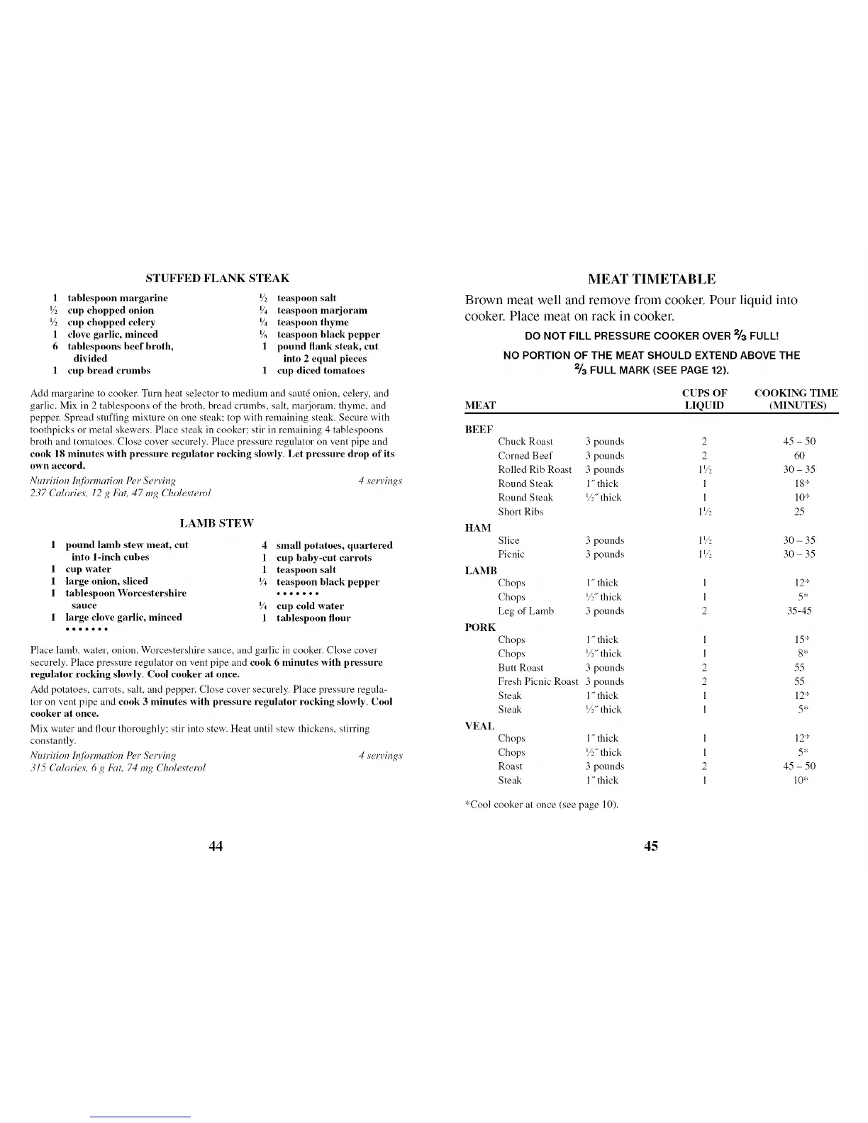 DO NOT FILL PRESSURE COOKER OVER 2/3 FULL!