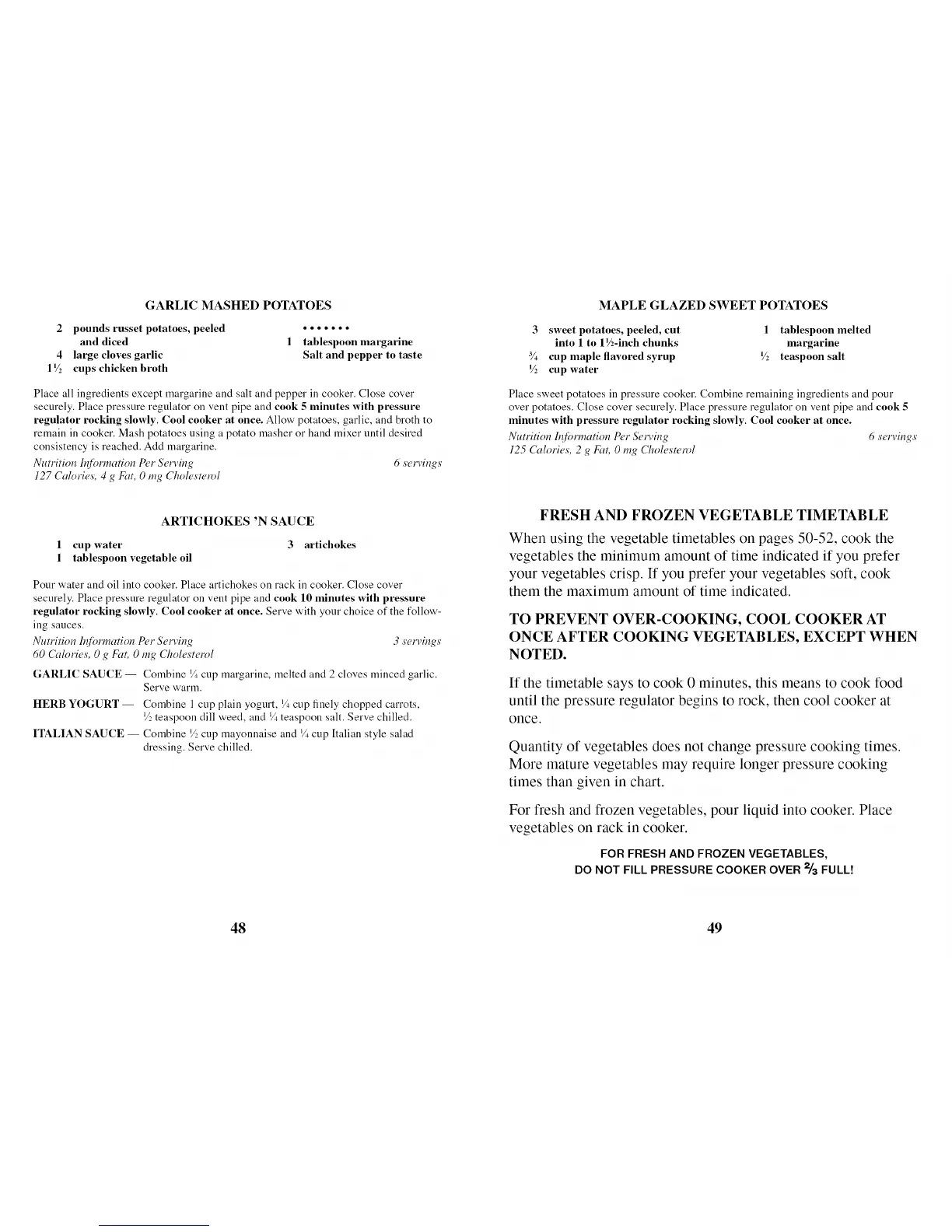 regulator rocking slowly. Cool cooker at once. Serve with your choice of the follow-