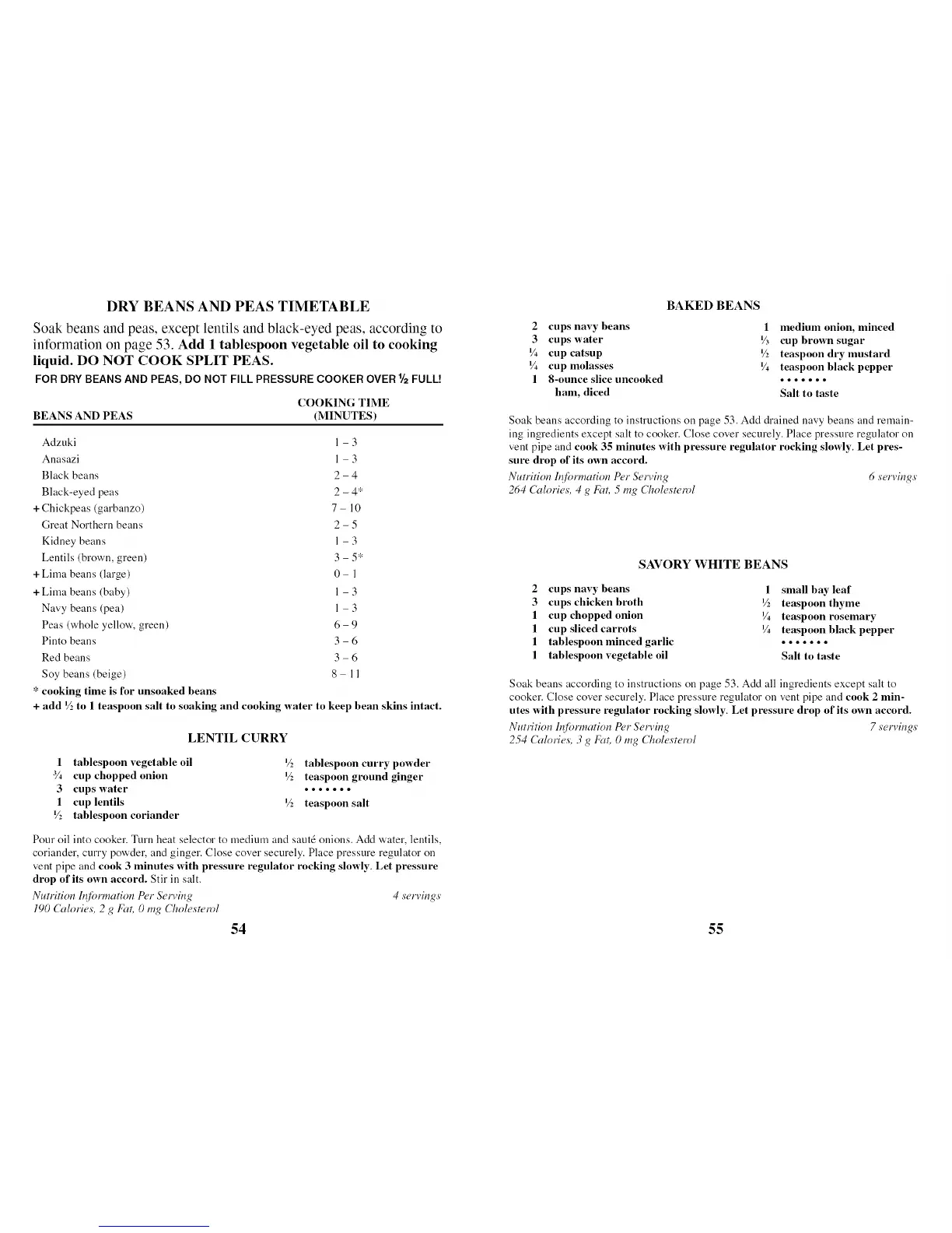 FOR DRY BEANS AND PEAS, DO NOT FILL PRESSURE COOKER OVER 1/=FULL!