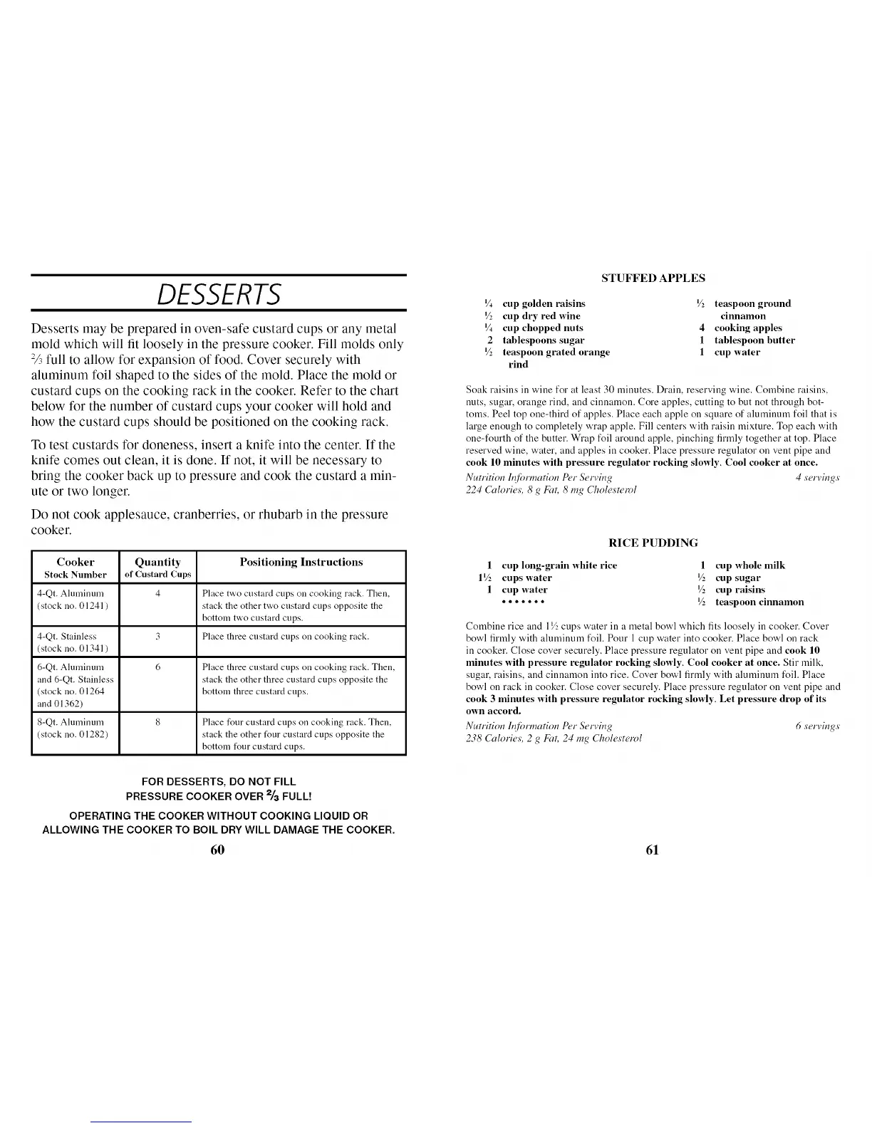 custard cups on the cooking rack in the cooker. Refer to the chart