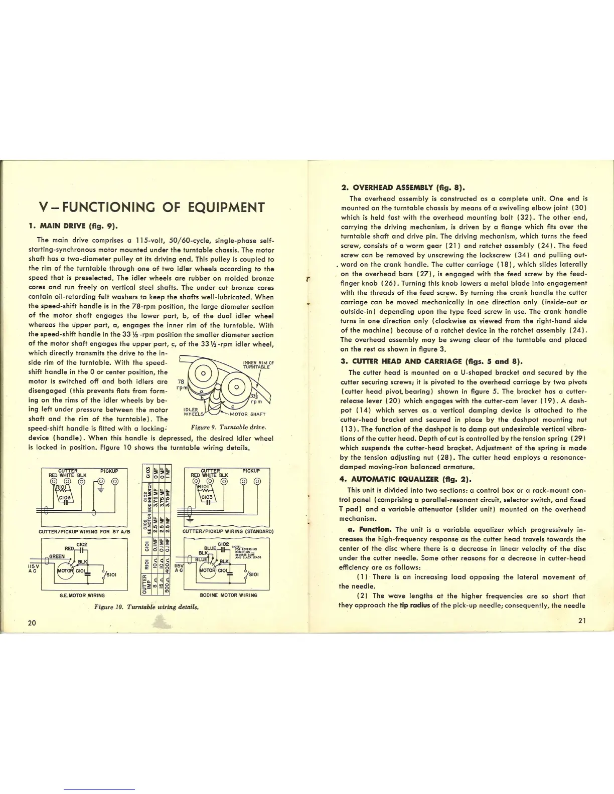 Presto 6N - Functioning of Equipment; Main Drive; Overhead Assembly; Cutter Head and Carriage;Automatic Equalizer