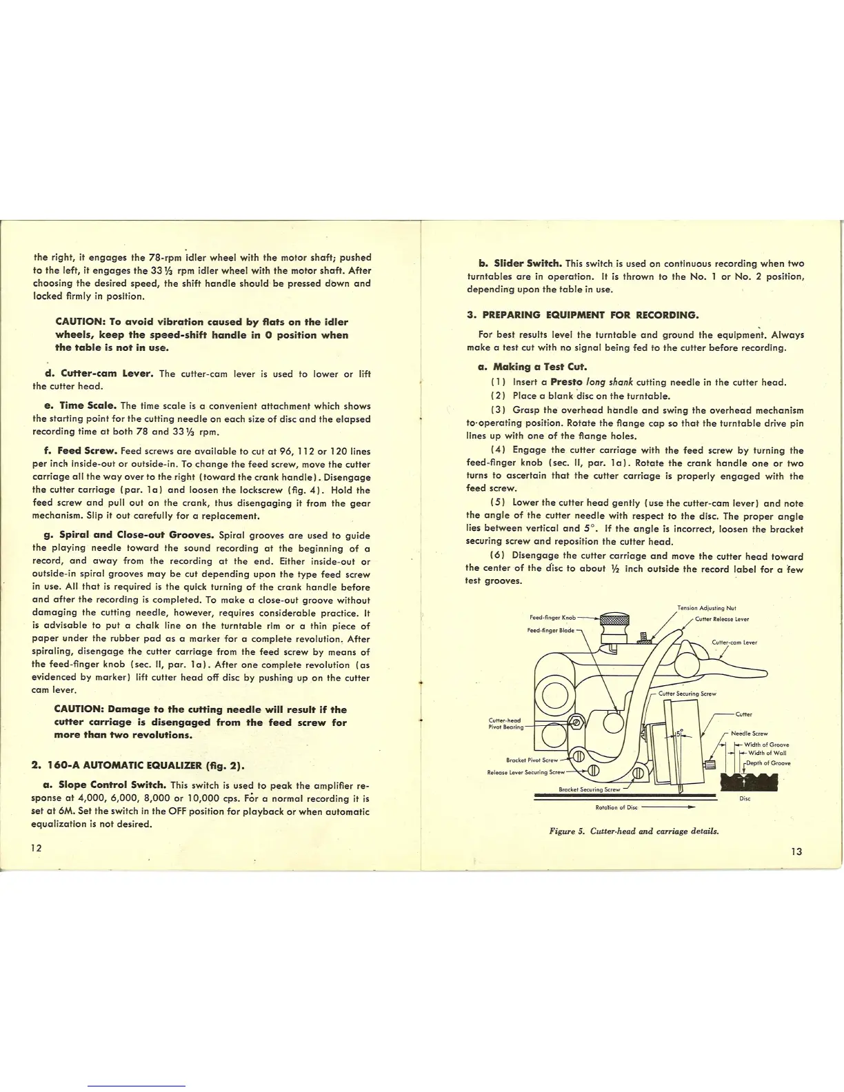 Presto 6N - 160-A Automatic Equalizer; Preparing Equipment for Recording; Slope Control Switch; Making a Test Cut
