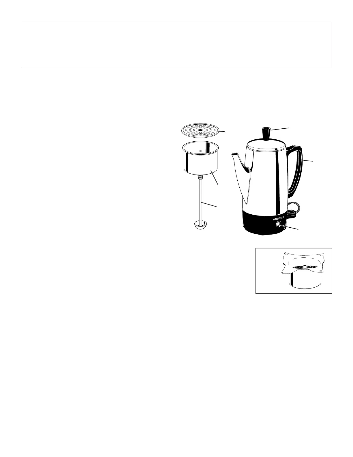 portion in the center of the coffee maker base.) While holding the tube in place, slip the filled basket onto the perk tube.
