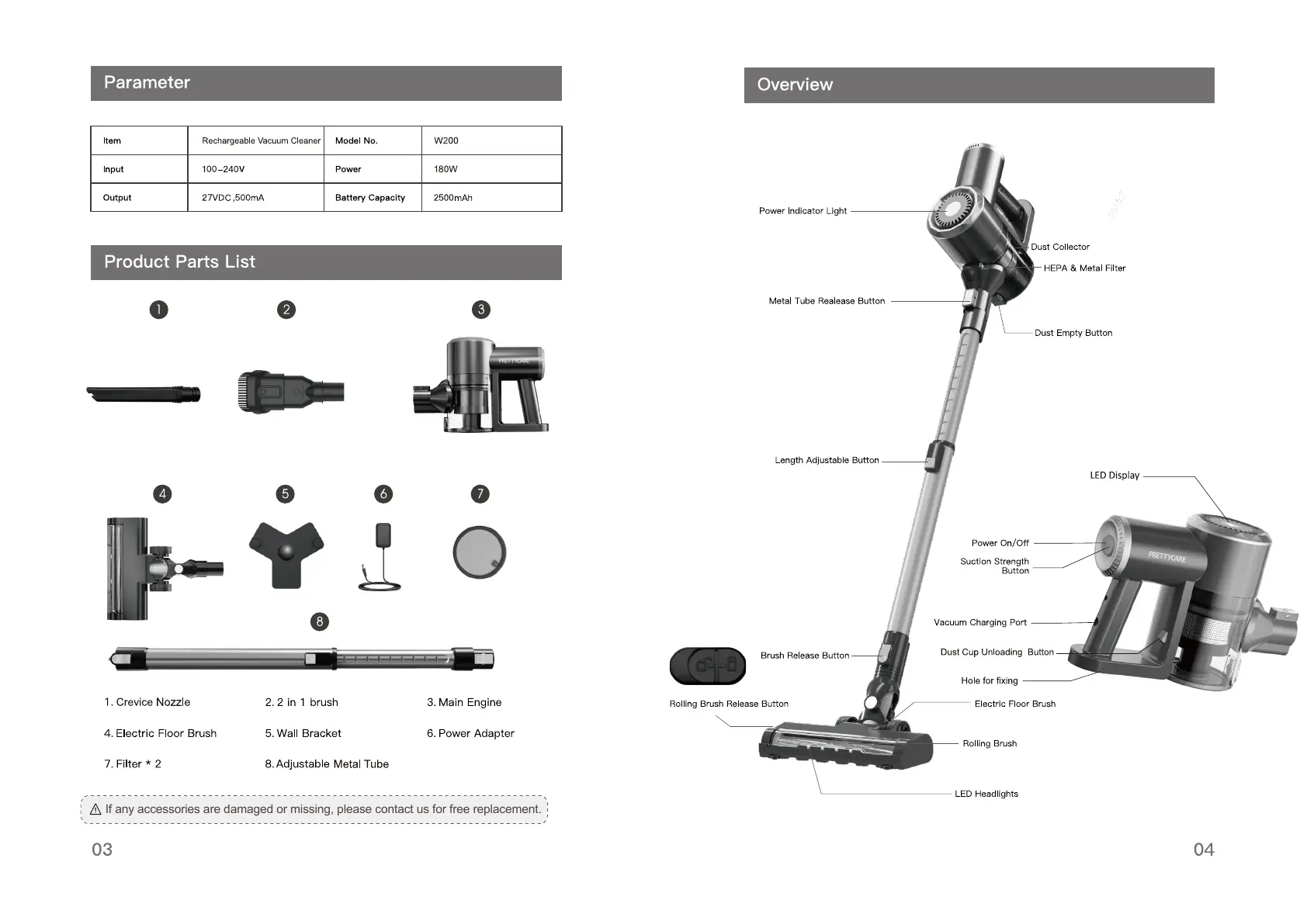 If any accessories are damaged or missing, please contact us for free replacement.