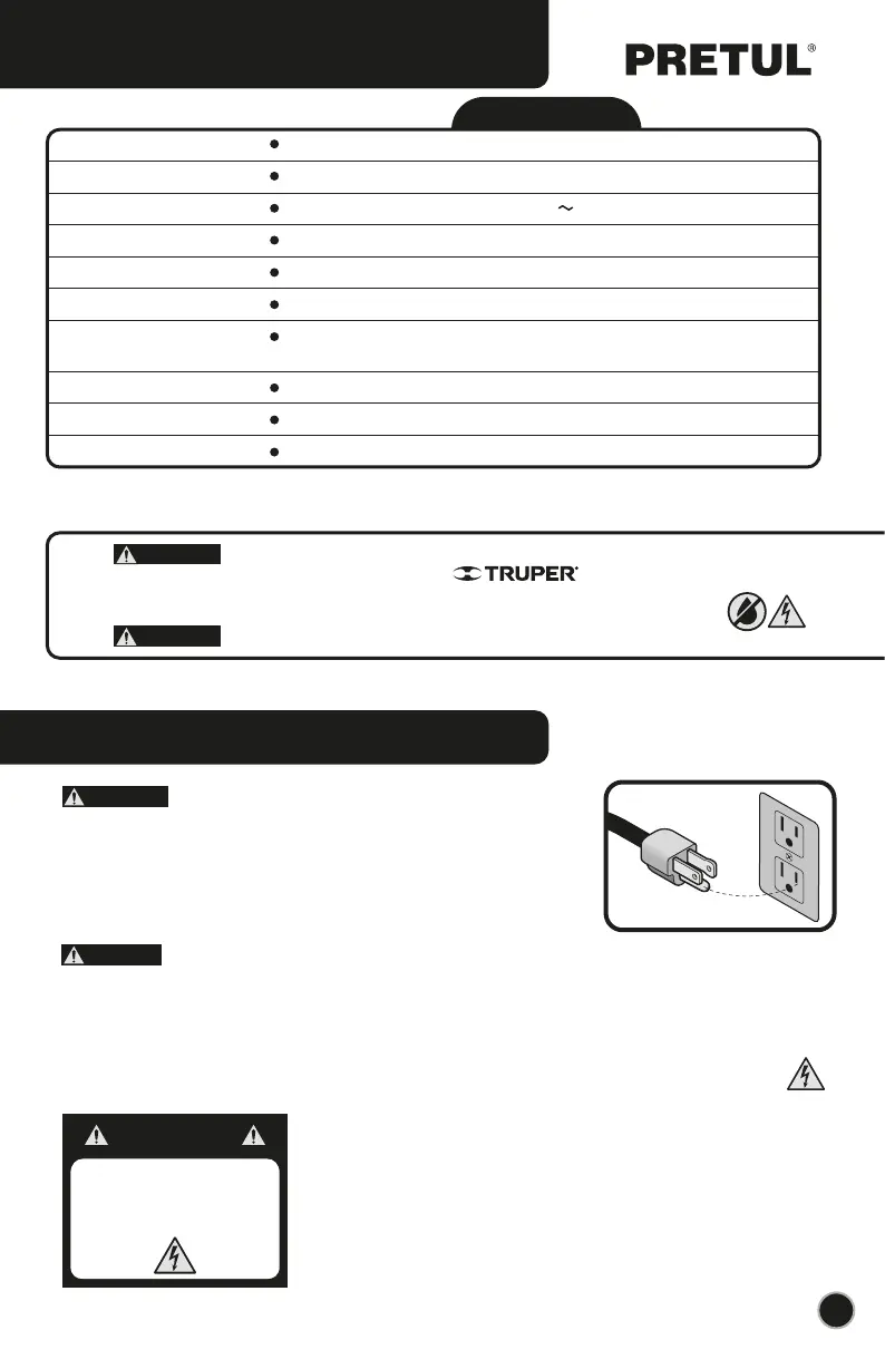 shock. This tool is built with a power cable with an earth conductor and ground