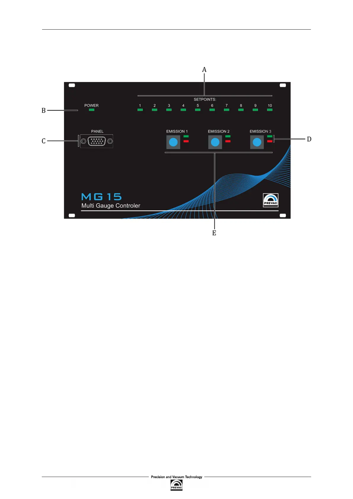 • D - Diodes signalling that emission is ON or passive gauges errors