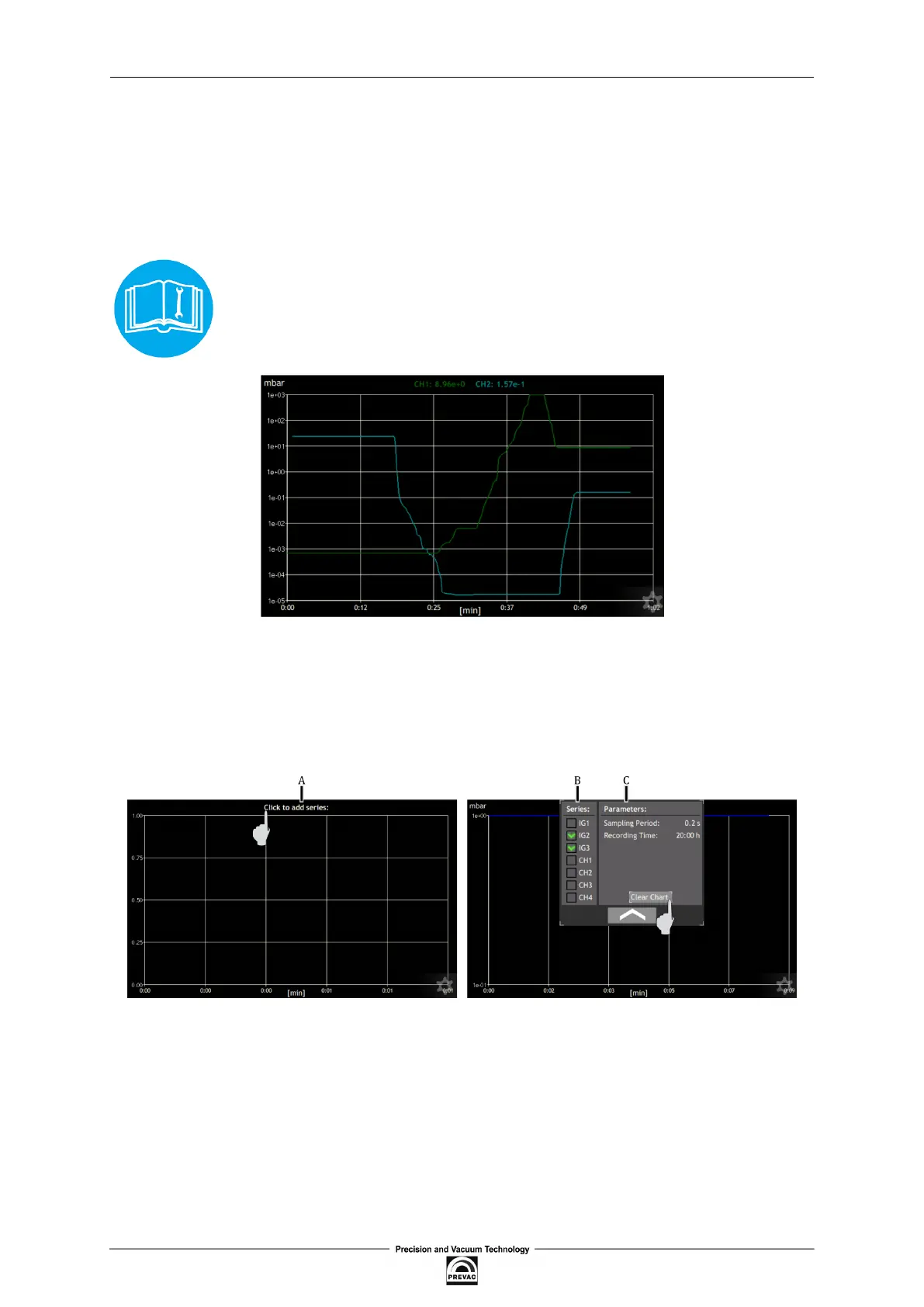 The time axis is scaled in minutes for the time of recording of charts up to one hour. Above one hour