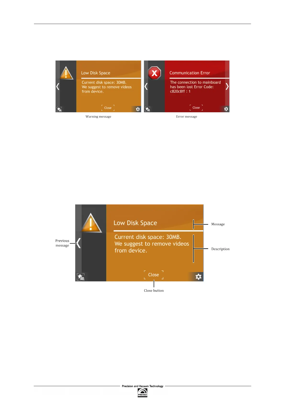 Error messages inform about critical events. The message is displayed in full screen (see Figure