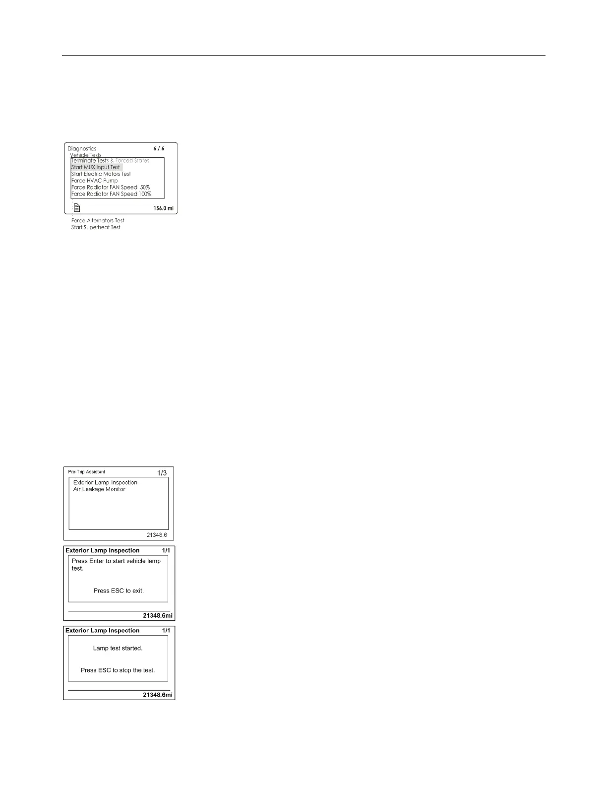 the error must be corrected before operating the vehicle. The available pre-trip tests include the Exterior Light
