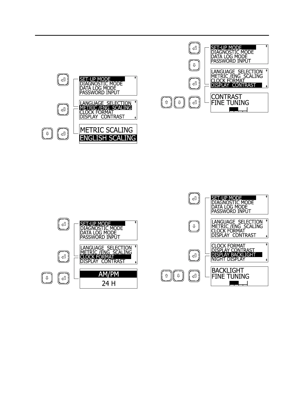 1. In SET UP mode, highlight DISPLAY