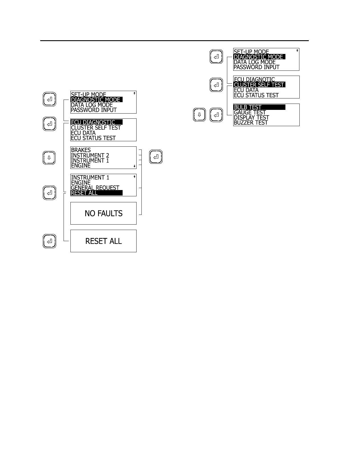 1. In diagnostic mode, highlight CLUSTER