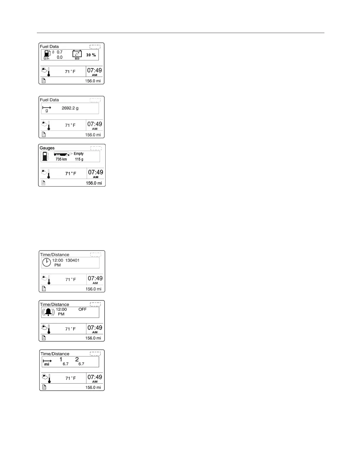 Adjust time and date with this menu. The instrument cluster has its own internal