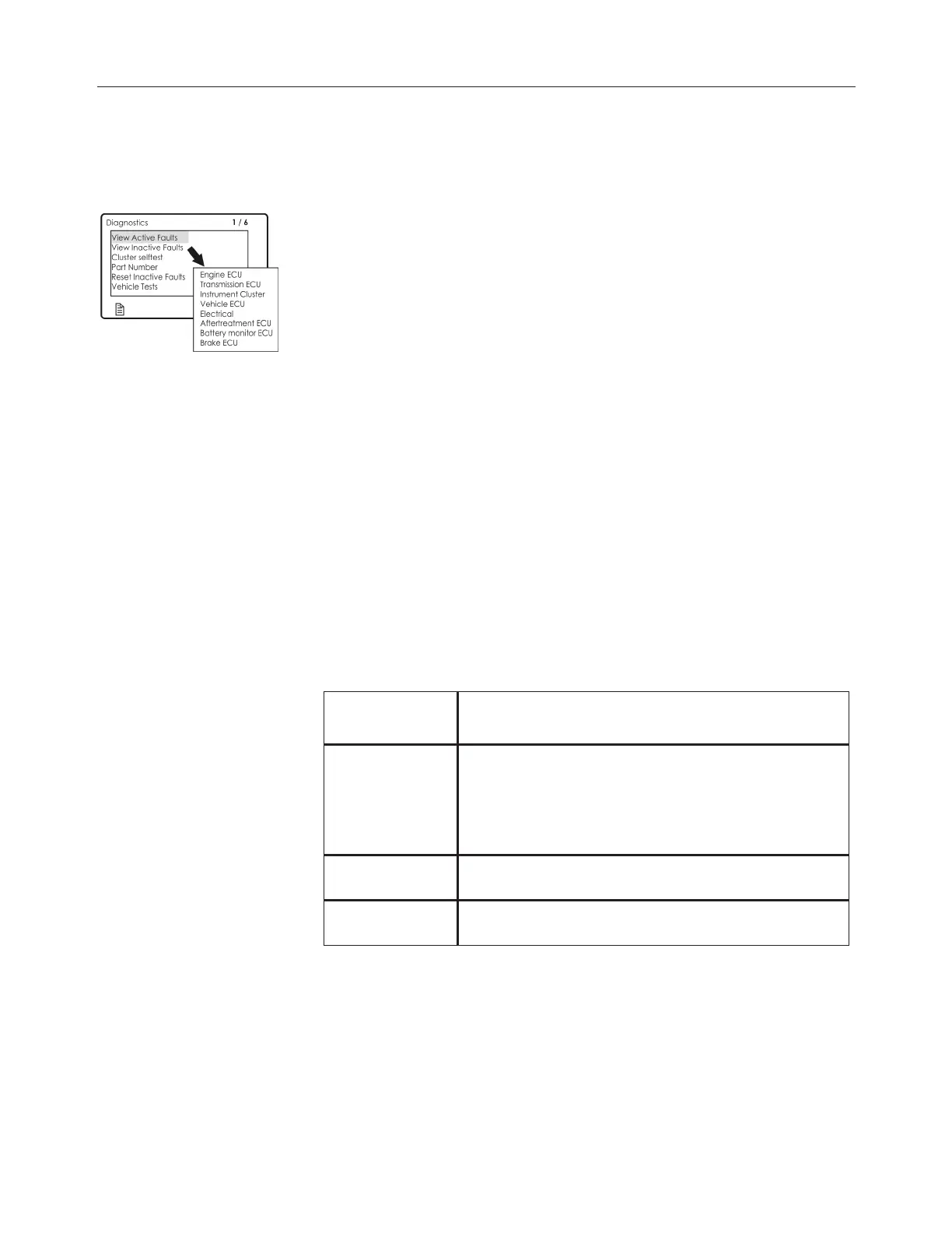 The Diagnostics menu enables fault tracing on the control units in the vehicle to check for faults. Instrument tests