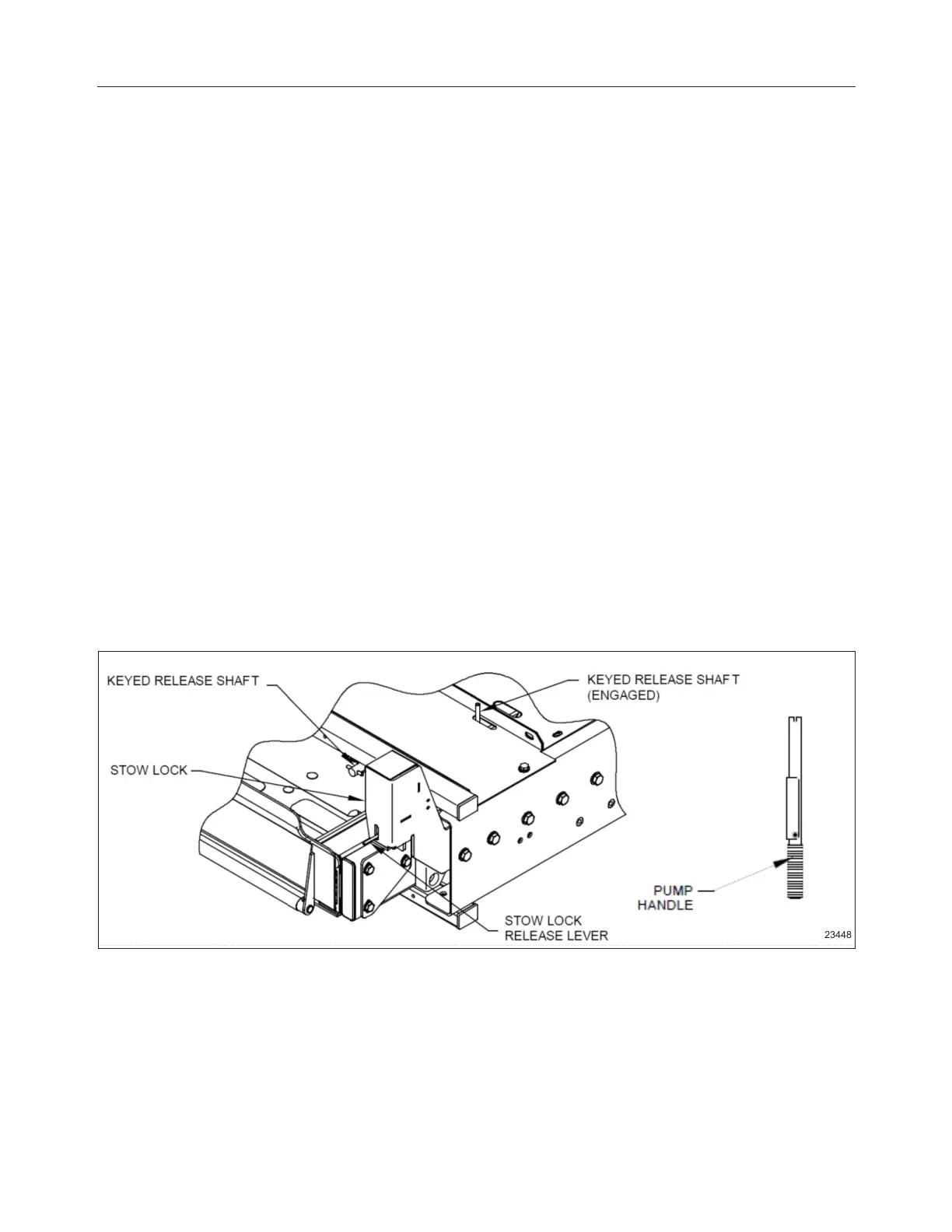 Manual operation components used are a hydraulic backup pump and pump handle, platform release mechanism,