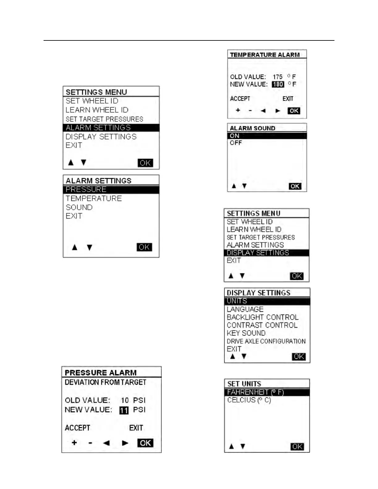 When selecting the Alarm Settings Menu, a sub