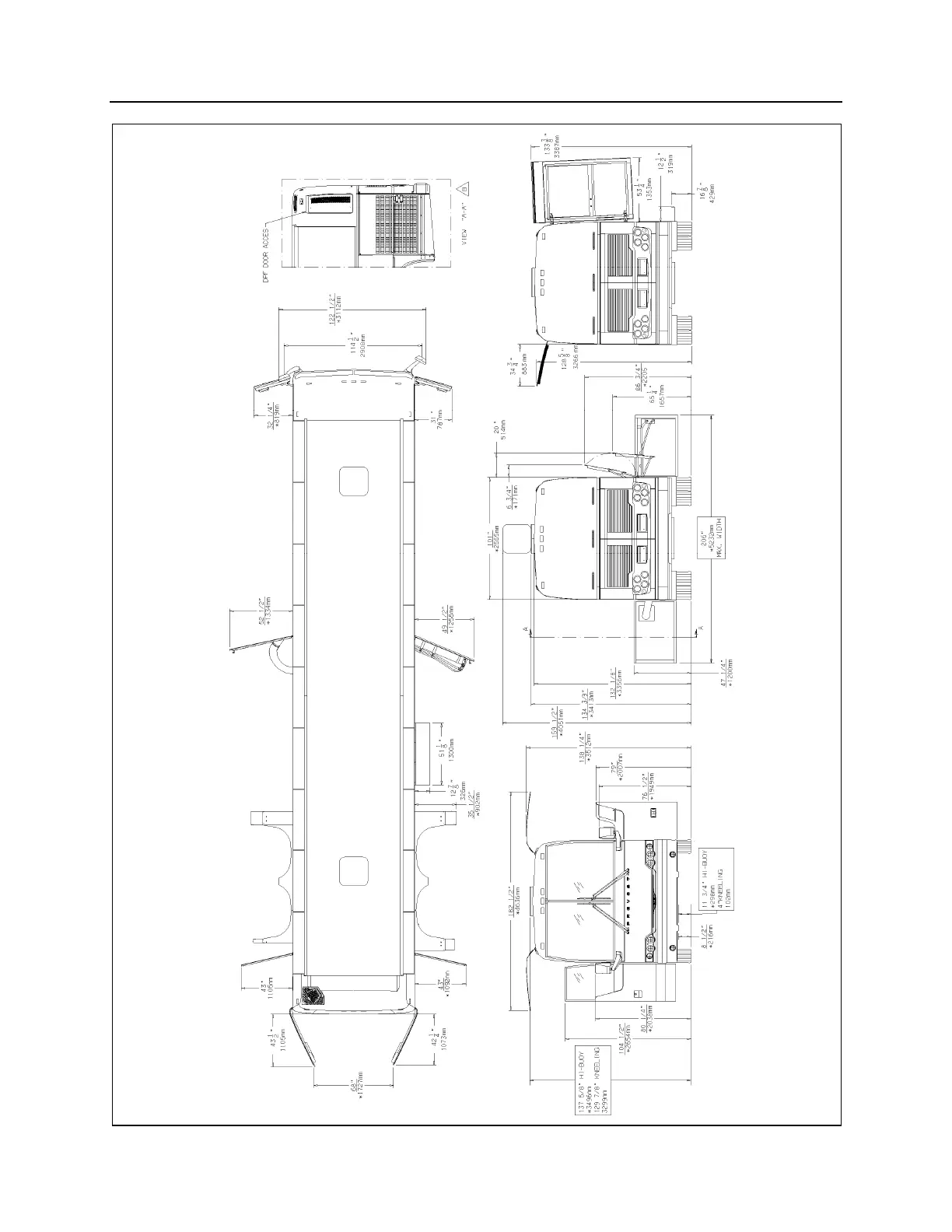 X3-45 OVERALL DIMENSIONS (TOP, FRONT AND REAR VIEWS)
