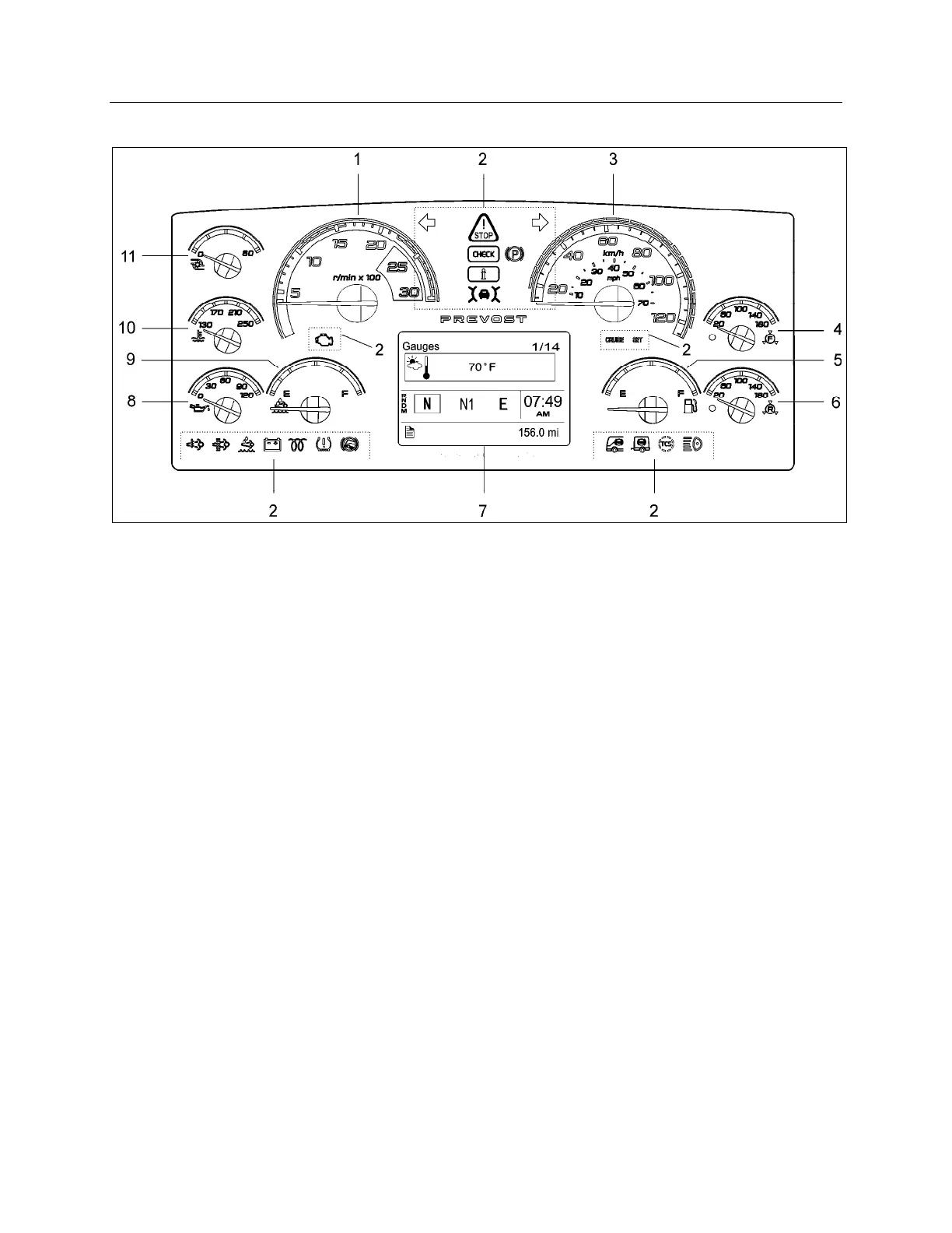 4. FRONT BRAKE AIR PRESSURE (SECONDARY) 10. ENGINE COOLANT TEMPERATURE