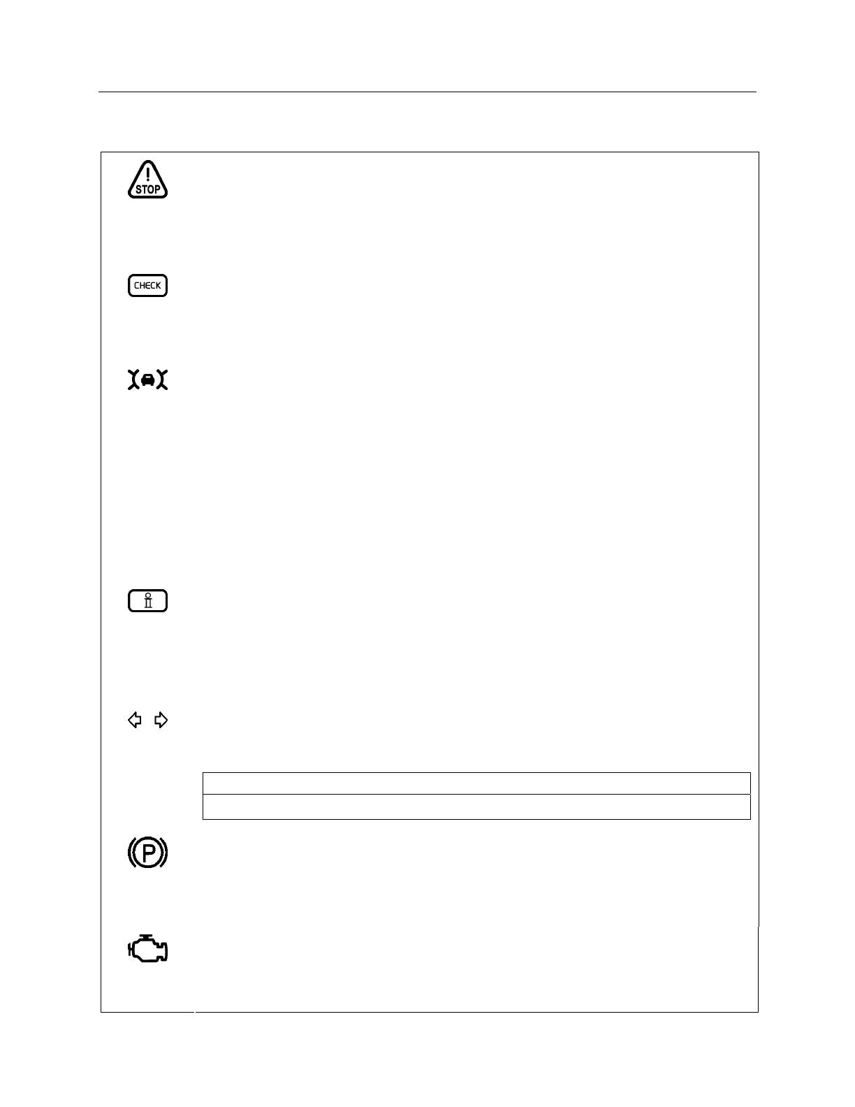 Illuminates when the emergency/parking brake is applied. The control valve is located