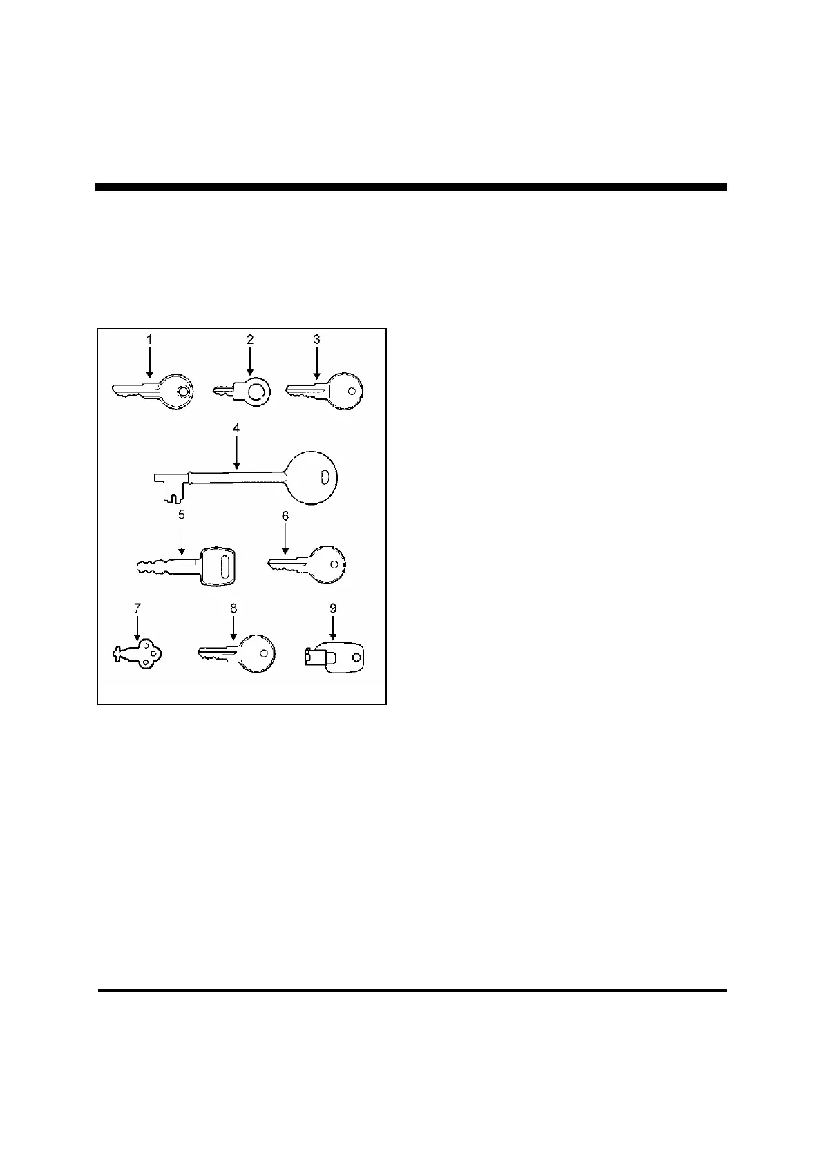 Depending on optional equipment, up to nine (9) different key models may have been supplied with your